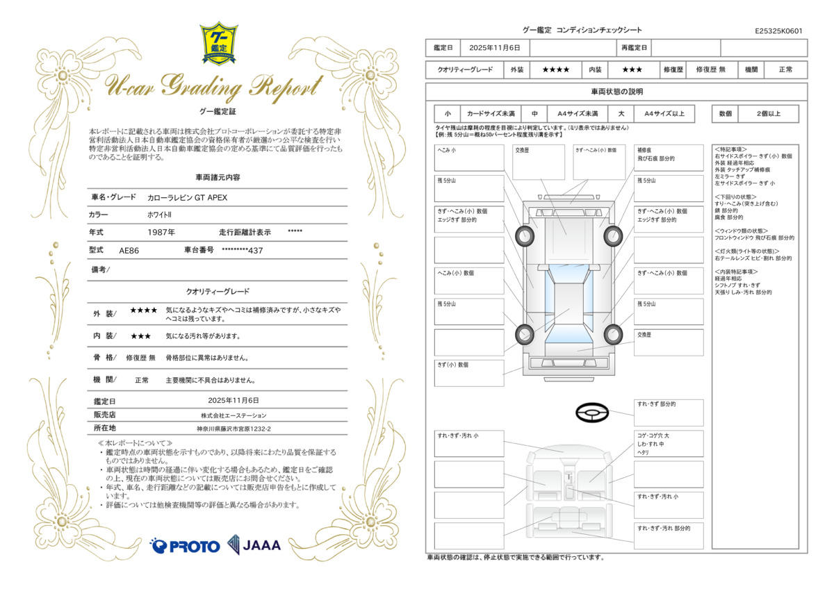 お車ご成約後、すぐに納車準備に入ります。基本的には現状での販売ですが、お車の状態をみながら、できるだけ仕上がりの良い状態になるまで納車準備させていただいております。納車後無料点検あります。AE86ご購入の方は必ずロードサービス特約付きの保険加入か、JAFへの加入をお願い致します。