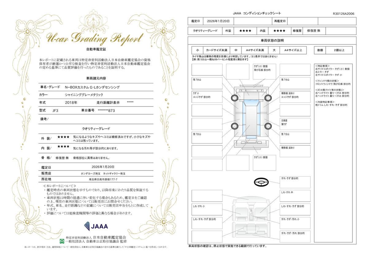 ホンダ N−BOXカスタム G・Lホンダセンシング ・平成30年1月登録 ・走行7万1千キロ ・車検…令和9年1月 ・ナビ ・リアカメラ ・ETC ・スマートキー ・ドアバイザー ・両側電動スライドドア ・純正14インチアルミホイール ・1年保証