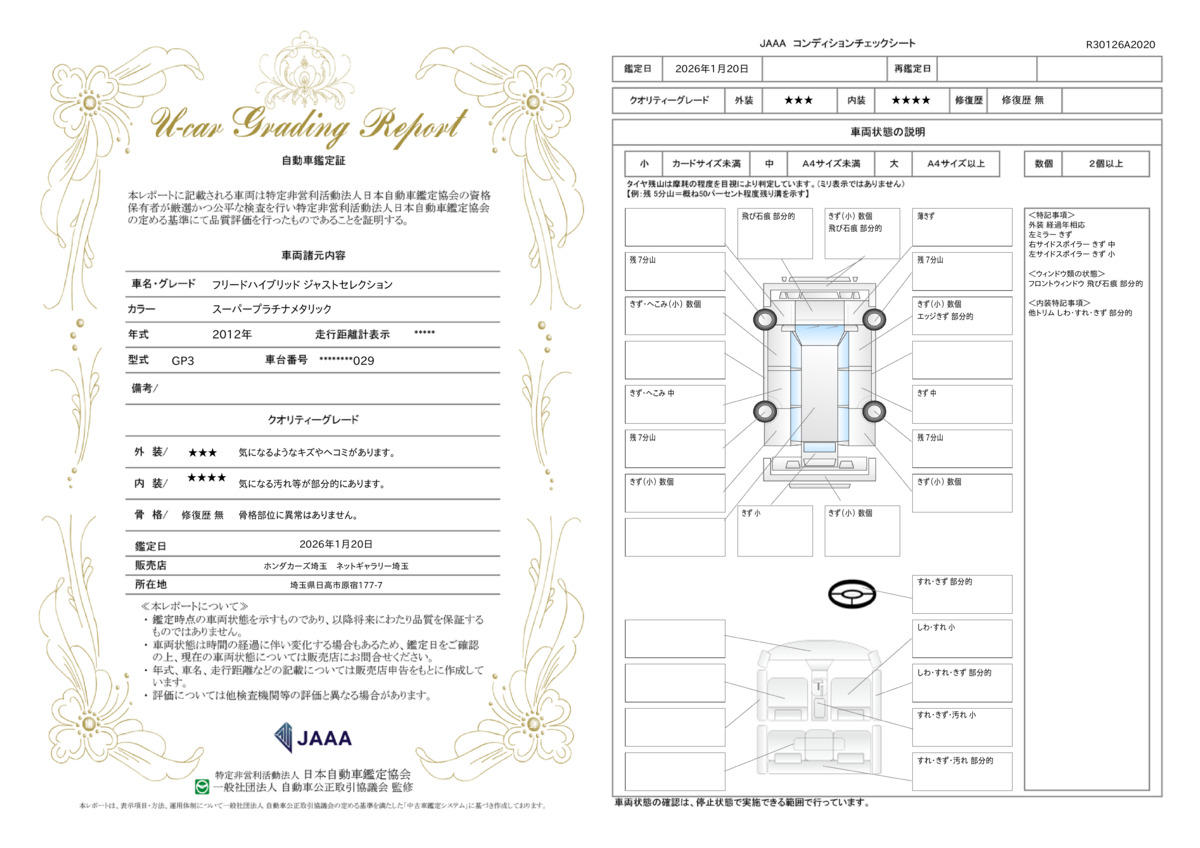 修復歴 なし 車体色 スーパープラチナメタリック