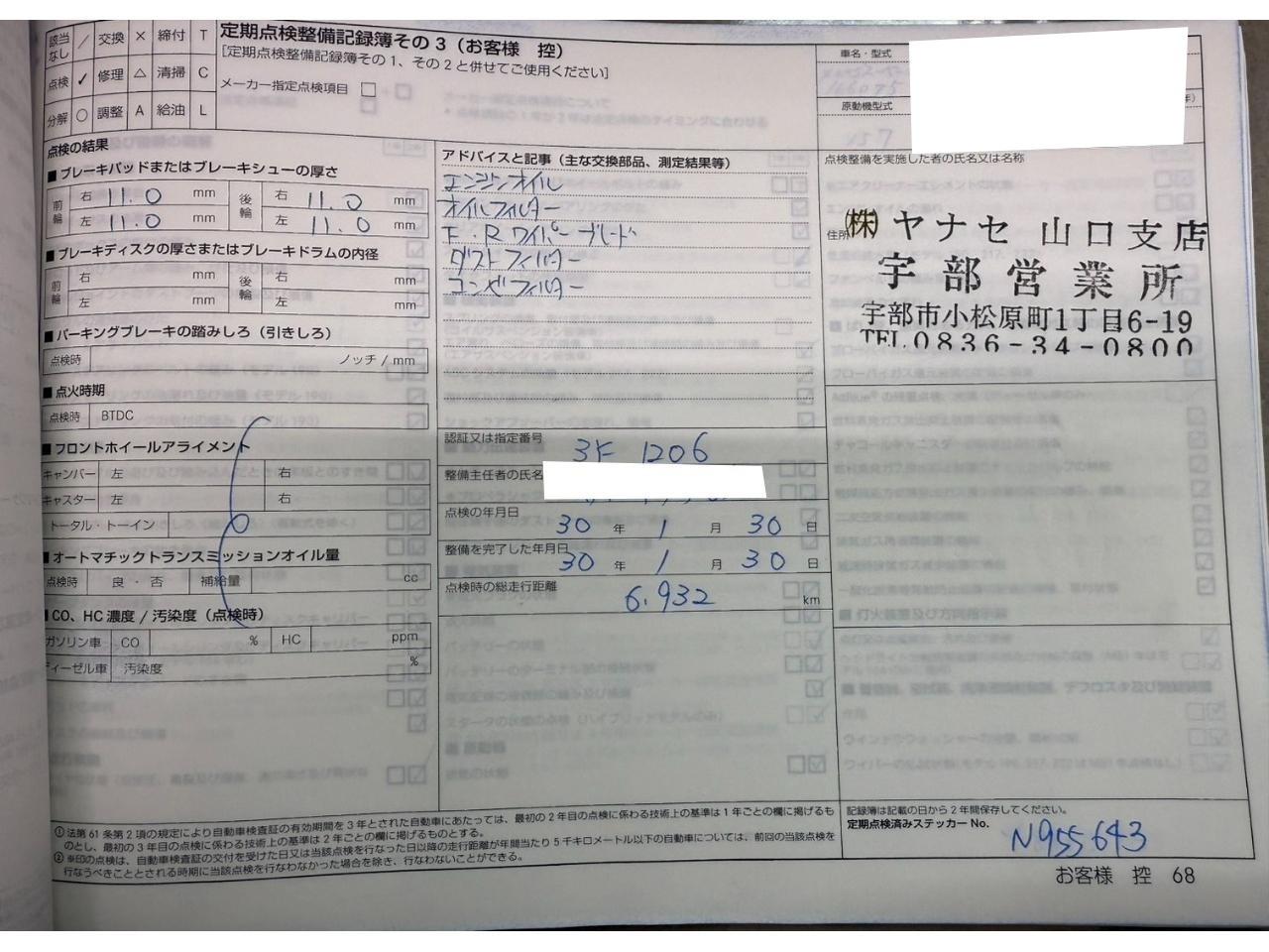 | 保証について | [保証付]:3ヶ月・3000km ※いずれか早い時期が保証適用の条件となります。 納車日より3ヶ月又は3000kmに達するまで無料で保証が受けられます。遠方のお客様はお近くのディーラー、又は提携工場でのご対応となります。メンテナンスも含めて納車後も幅広くお客様をサポート致します。 |