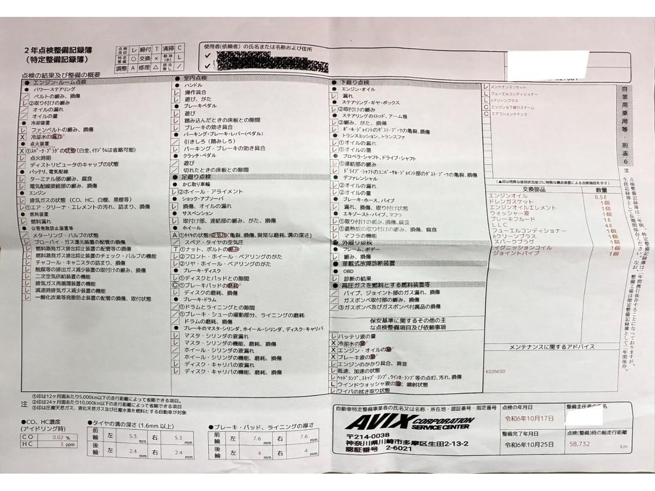 | 装備内容備考:ACコンプレッサー内部のコーティング剤、マイクロロンAFを施工します。コンプレッサー内部摩耗を低減し寿命を延長、さらには燃費アップも期待できます。夏場は冷却効率が向上し、よく冷えます。 |