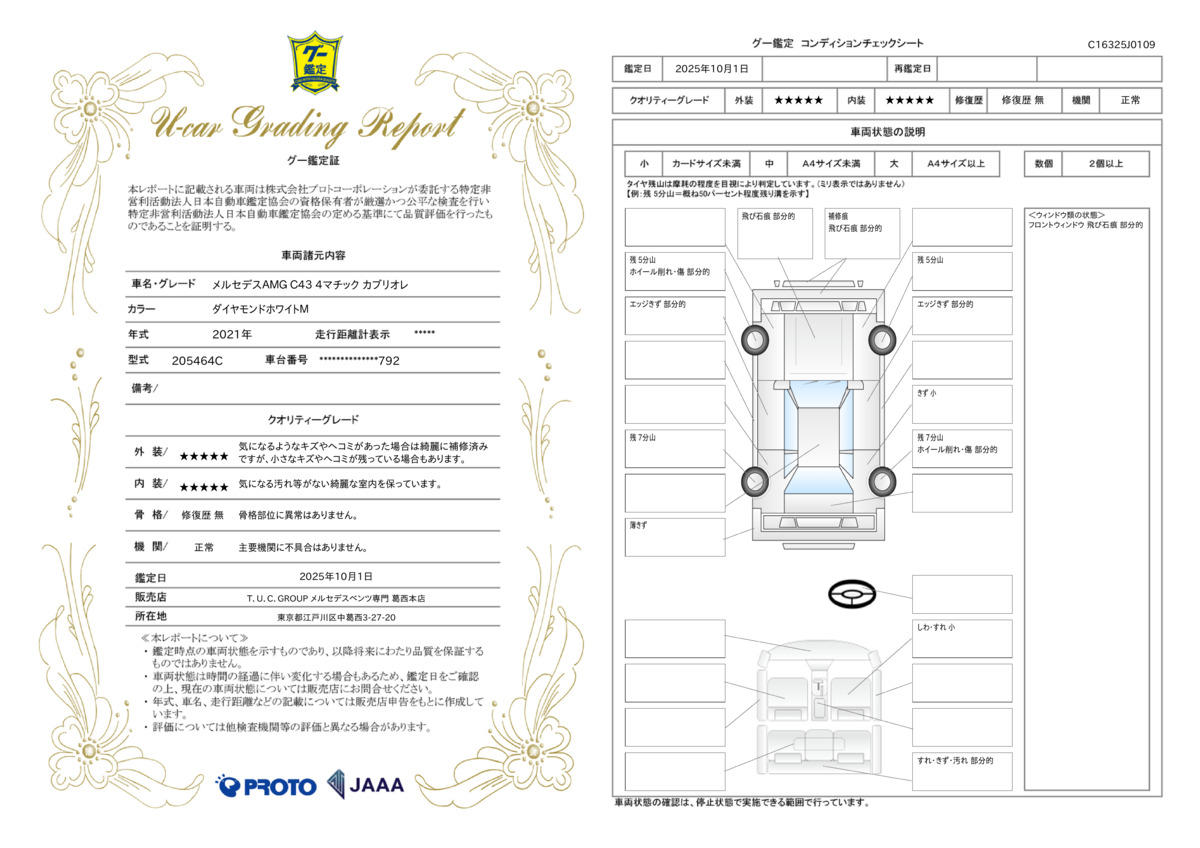 整備付 ■T.U.C.GROUPメルセデス・ベンツ専門 葛西本店では、法定定期点検整備項目に基づき全車納車前点検整備を行い、記録簿を発行し納車致します。ベンツ専用テスターも完備しておりますのでご安心下さい■ |