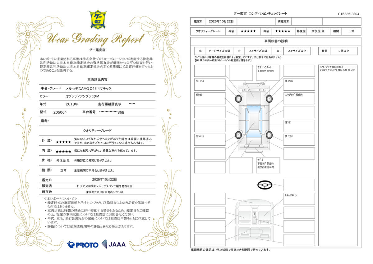 | 整備付 ■T.U.C.GROUPメルセデス・ベンツ専門 葛西本店では、法定定期点検整備項目に基づき全車納車前点検整備を行い、記録簿を発行し納車致します。ベンツ専用テスターも完備しておりますのでご安心下さい■ |