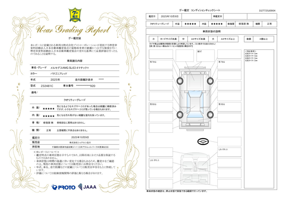 [保証付]:2028(令和10)年4月まで・走行無制限 ●新車保証継承(走行距離無制限)車検満了日まで新車保証が付帯となります。全国のMBディーラーにてご利用可能です。有料で延長保証のオプションもございます。 |
