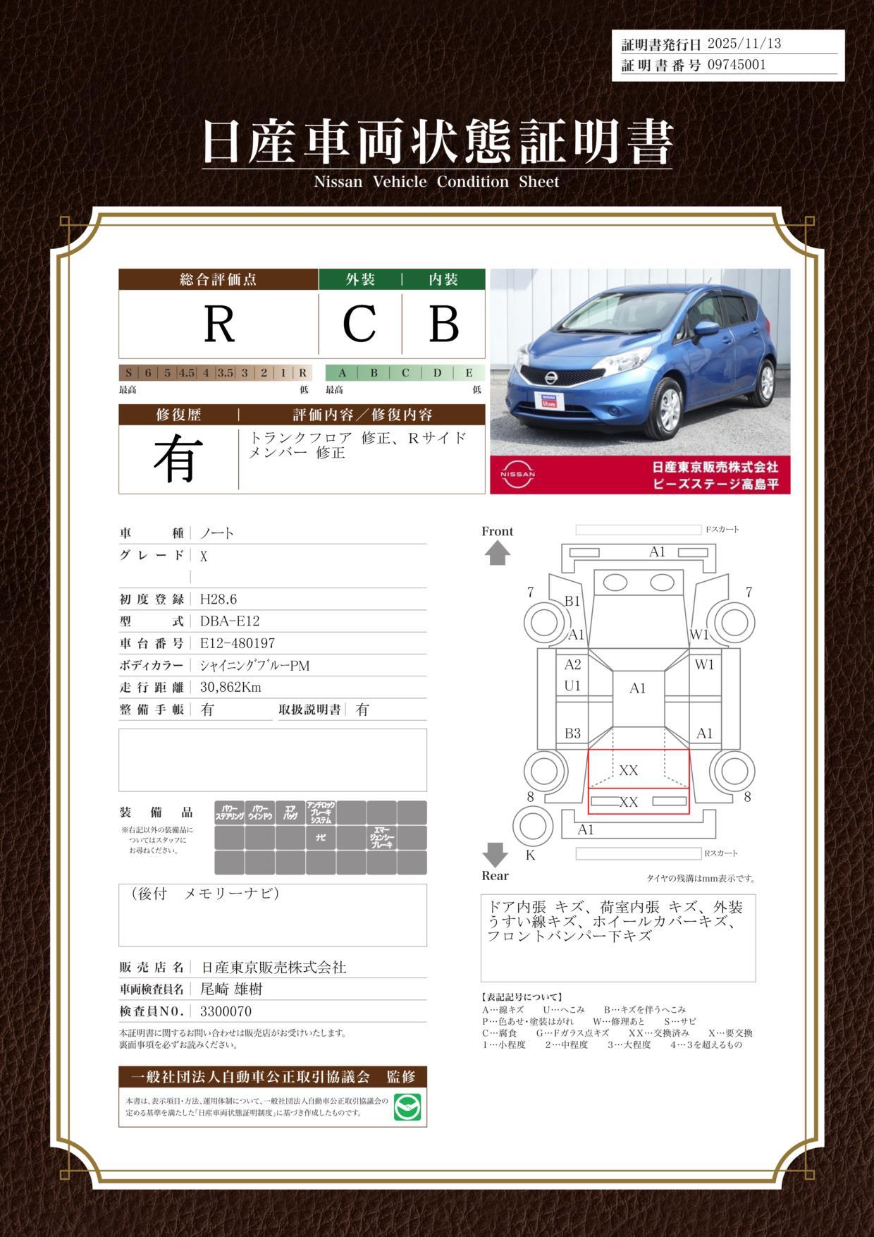 | 保証について | [保証付]:12ヶ月・走行無制限 |