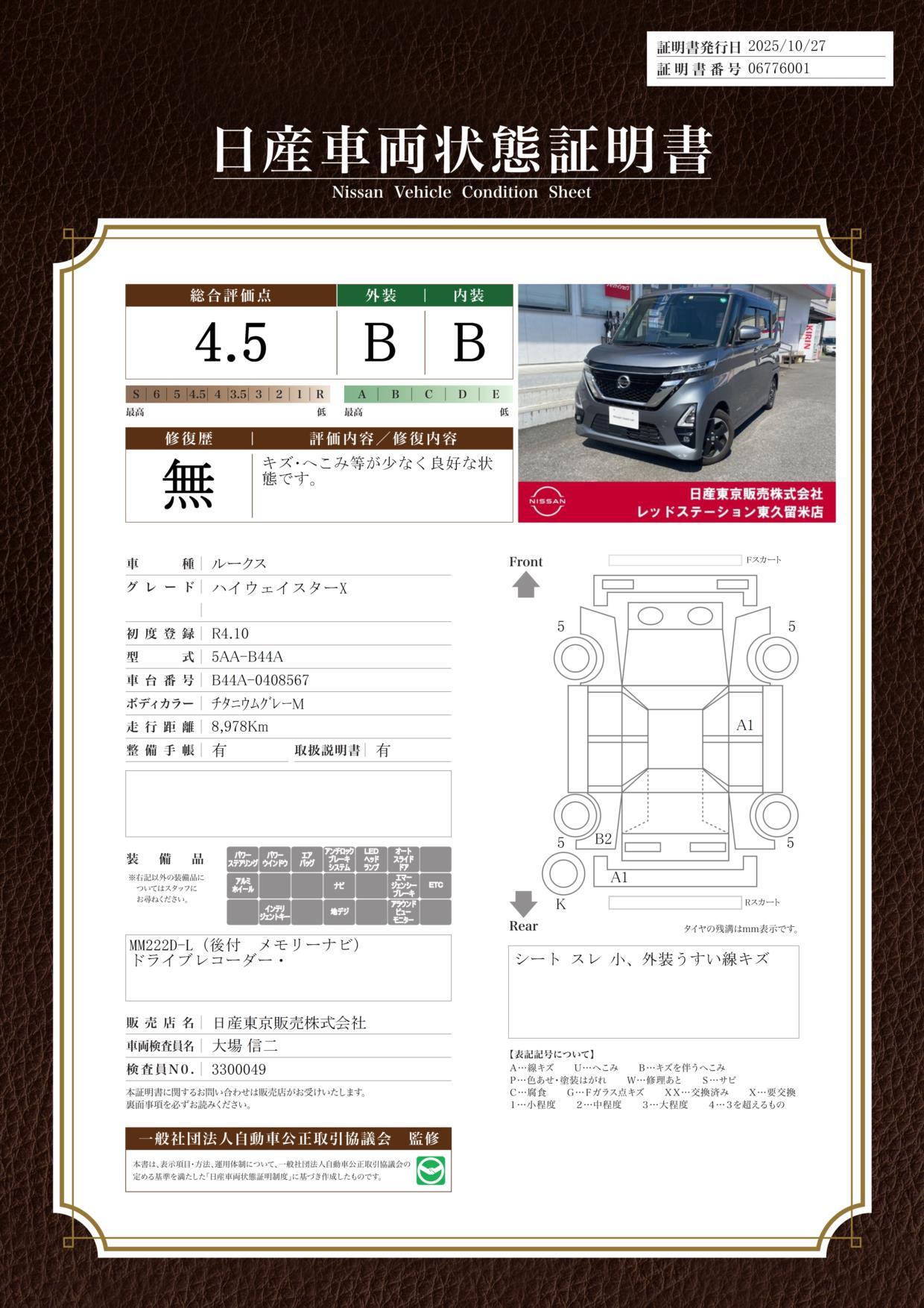 | 保証について | [保証付]:24ヶ月・走行無制限 |