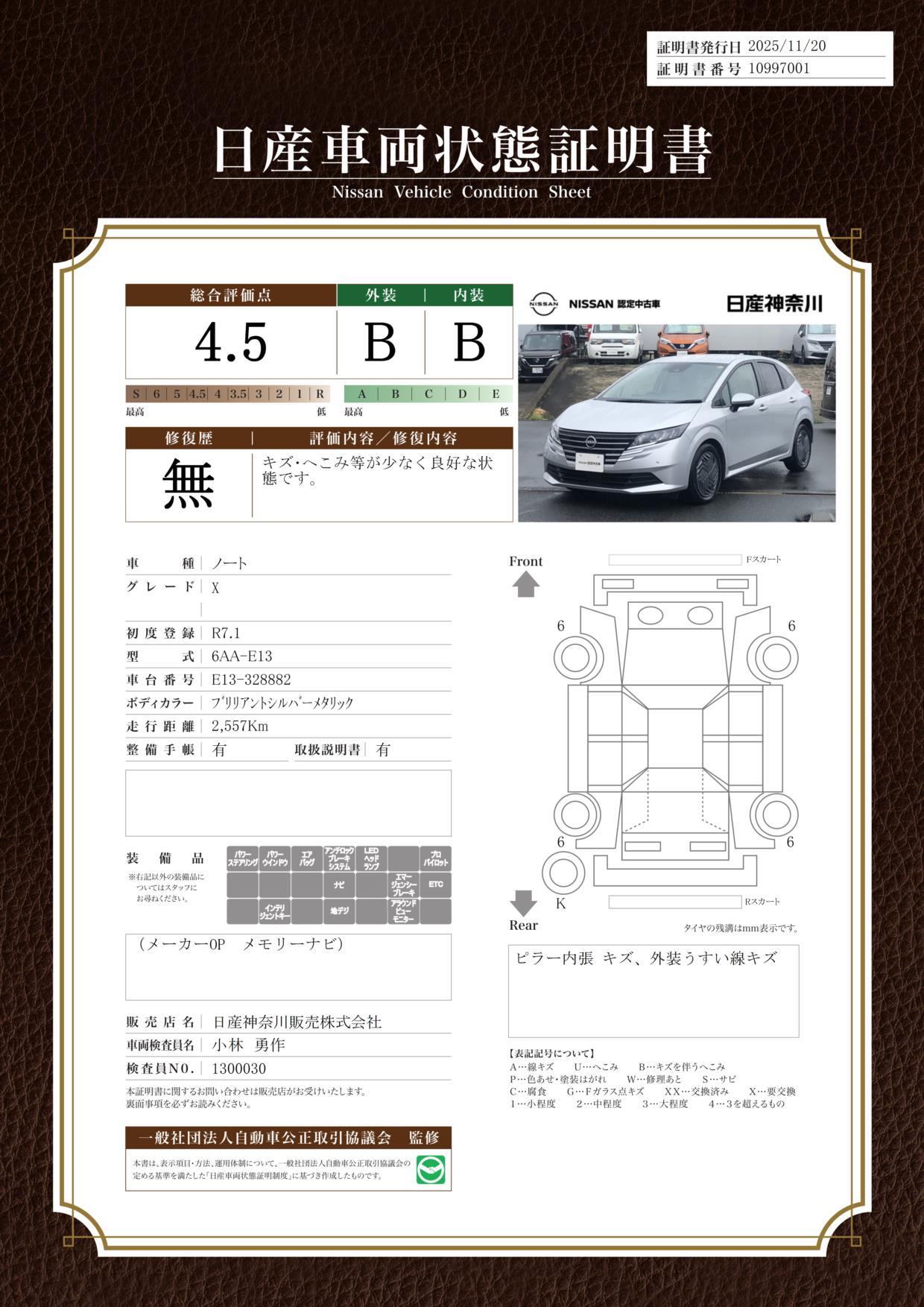 ご納車後 一ヶ月又は1000キロ目安の無料点検がございます。日産プリンス神奈川の61店舗はもちろん、日産整備工場で保証整備が受けられ安心です!納車の際にご予約を承ります、スタッフにご用命下さいませ。