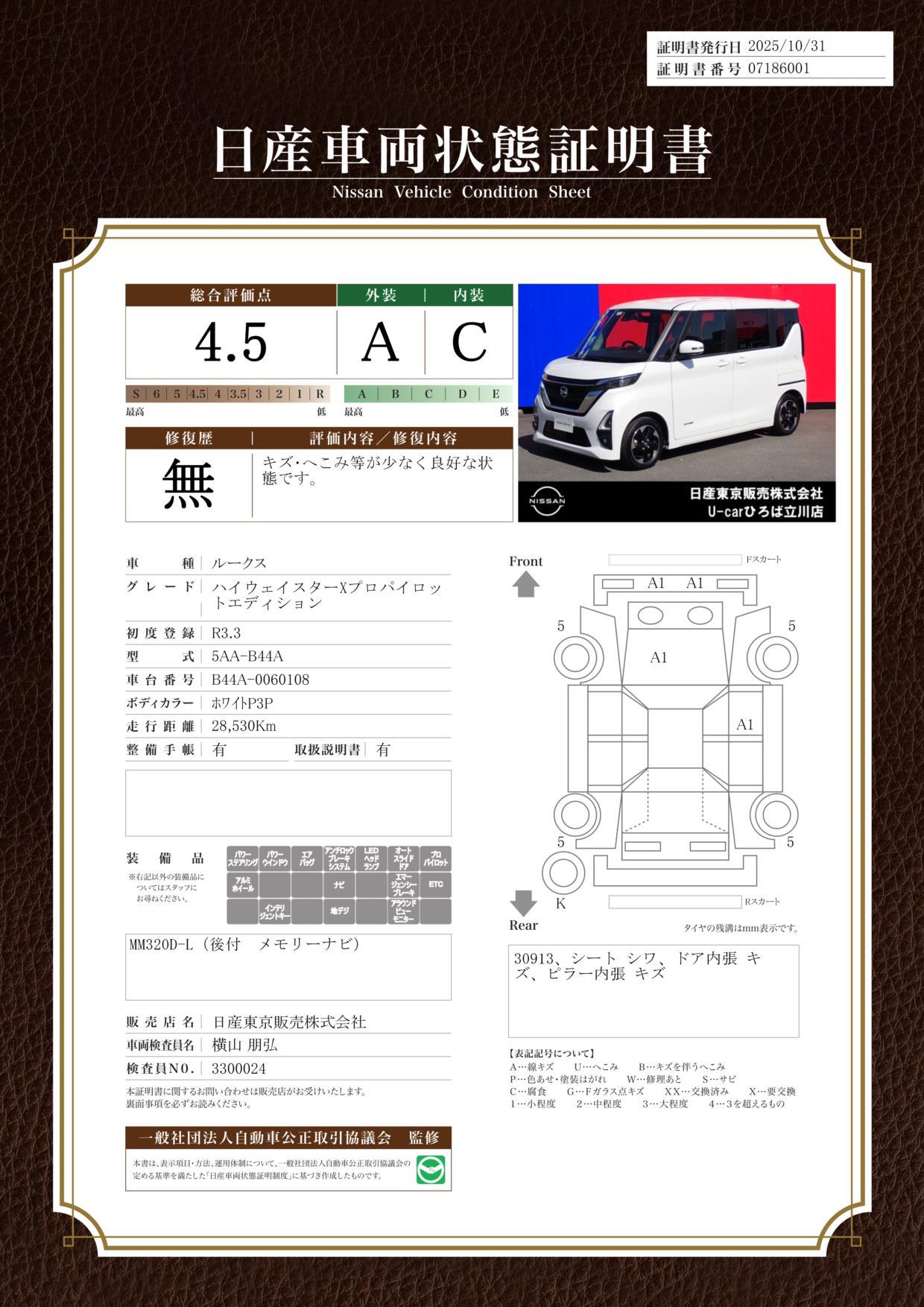| 保証について | [保証付]:24ヶ月・走行無制限 |