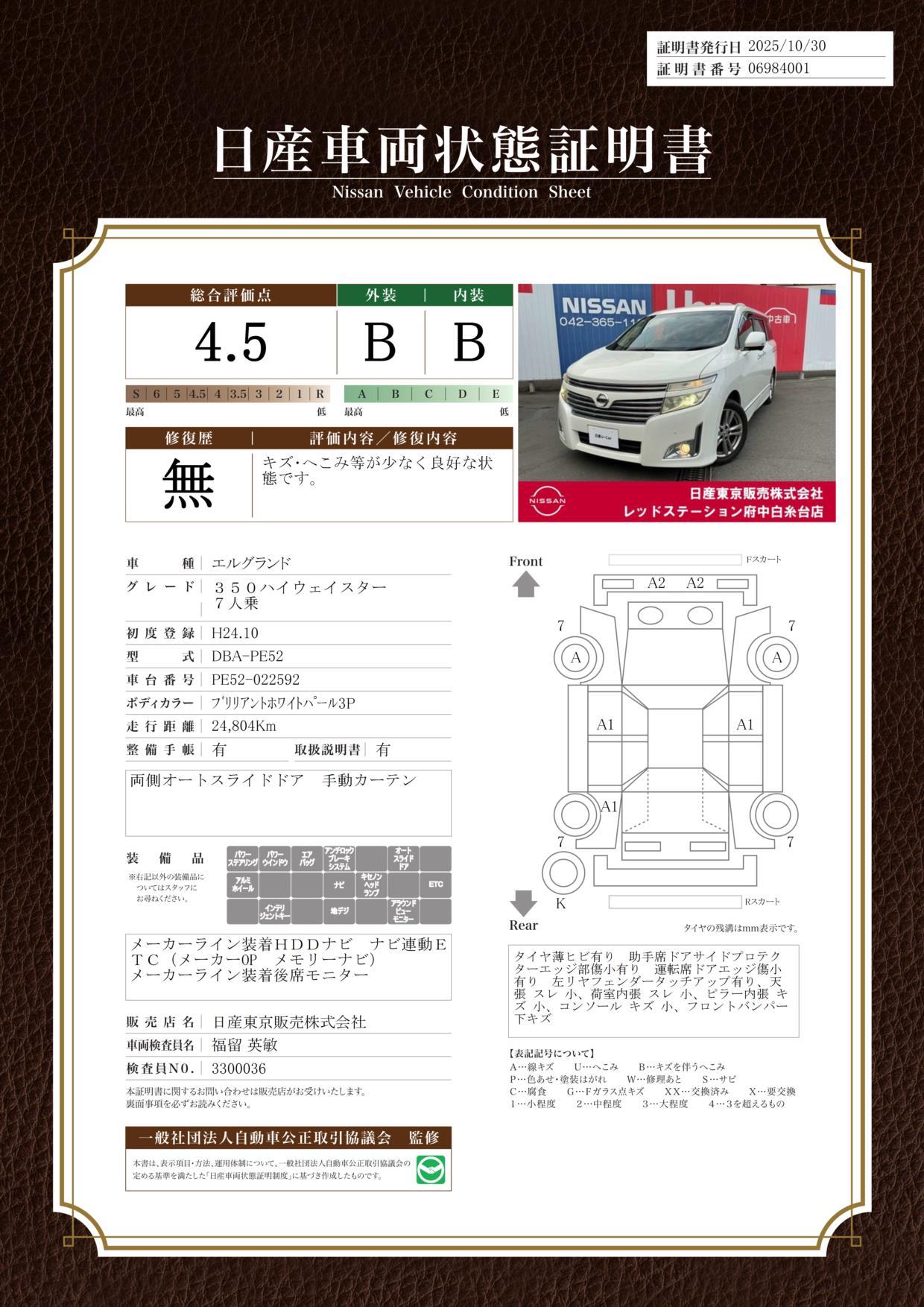 [保証付]:12ヶ月・走行無制限 日産ワイド保証:保証期間12ヶ月(走行距離無制限)又わずかなご負担で日産ワイド保証プレミアム(最長プラス24ヶ月)お付けすることが出来ます。 |