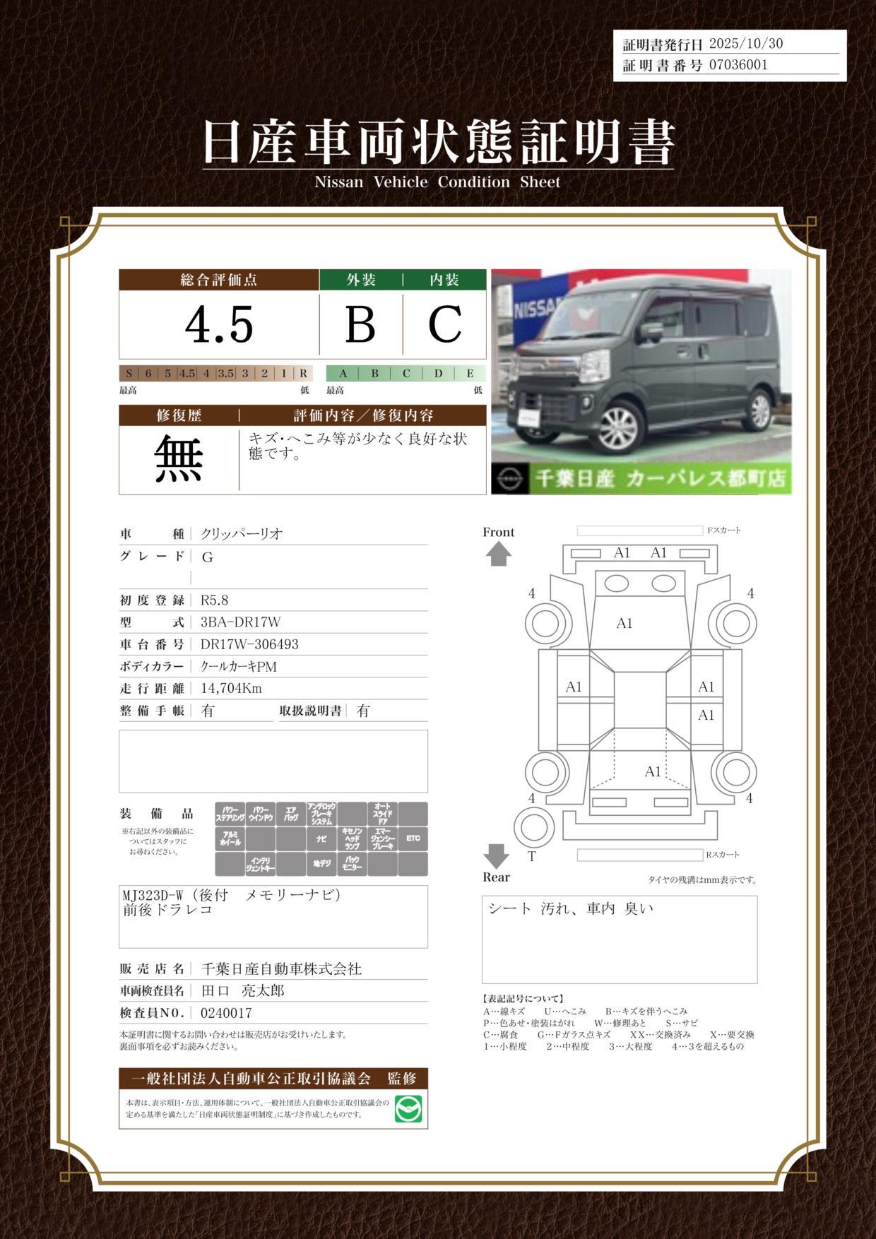 | 保証について | [保証付]:24ヶ月・走行無制限 |