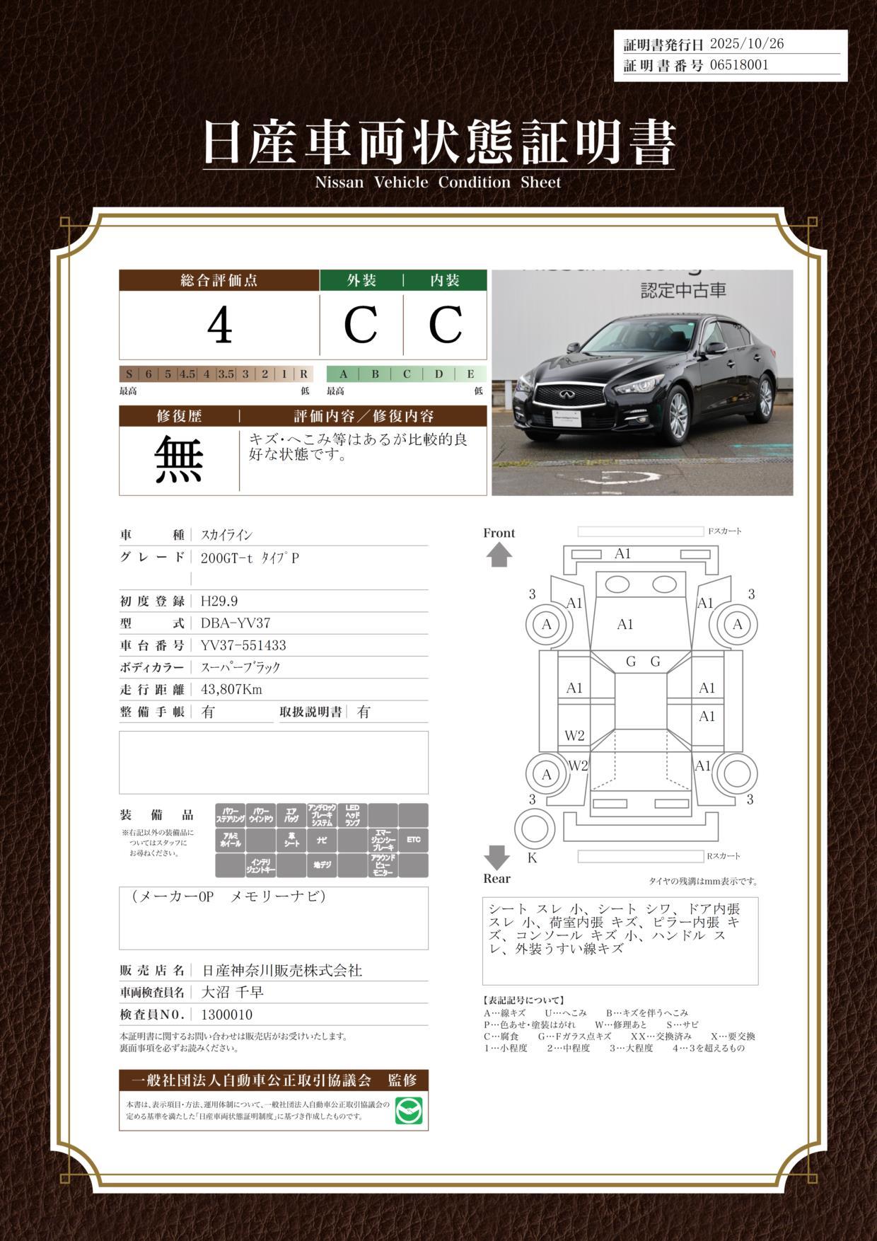 プレミアム認定中古車ならさらに安心走行距離無制限、大切な愛車のパーツ類を2年間無料保証!全国の日産サービス工場をご利用いただけるので、万が一お出掛け先でトラブルが発生しても安心です。(日産車以外もサポートいたします)また、1ヶ月又は1000km走行時に、無料点検を実施