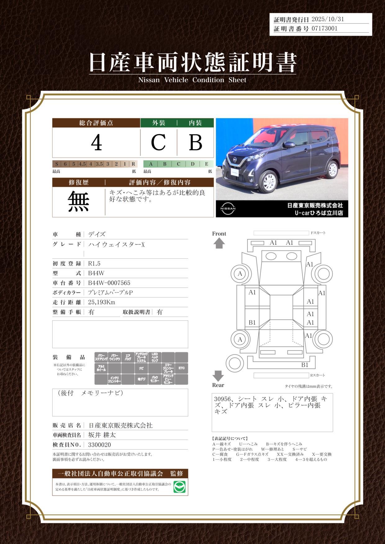 • また、修復歴・法定整備・保証の有無ならびに詳細内容につきましても、必ず各販売店にご確認いただきますようお願いいたします。