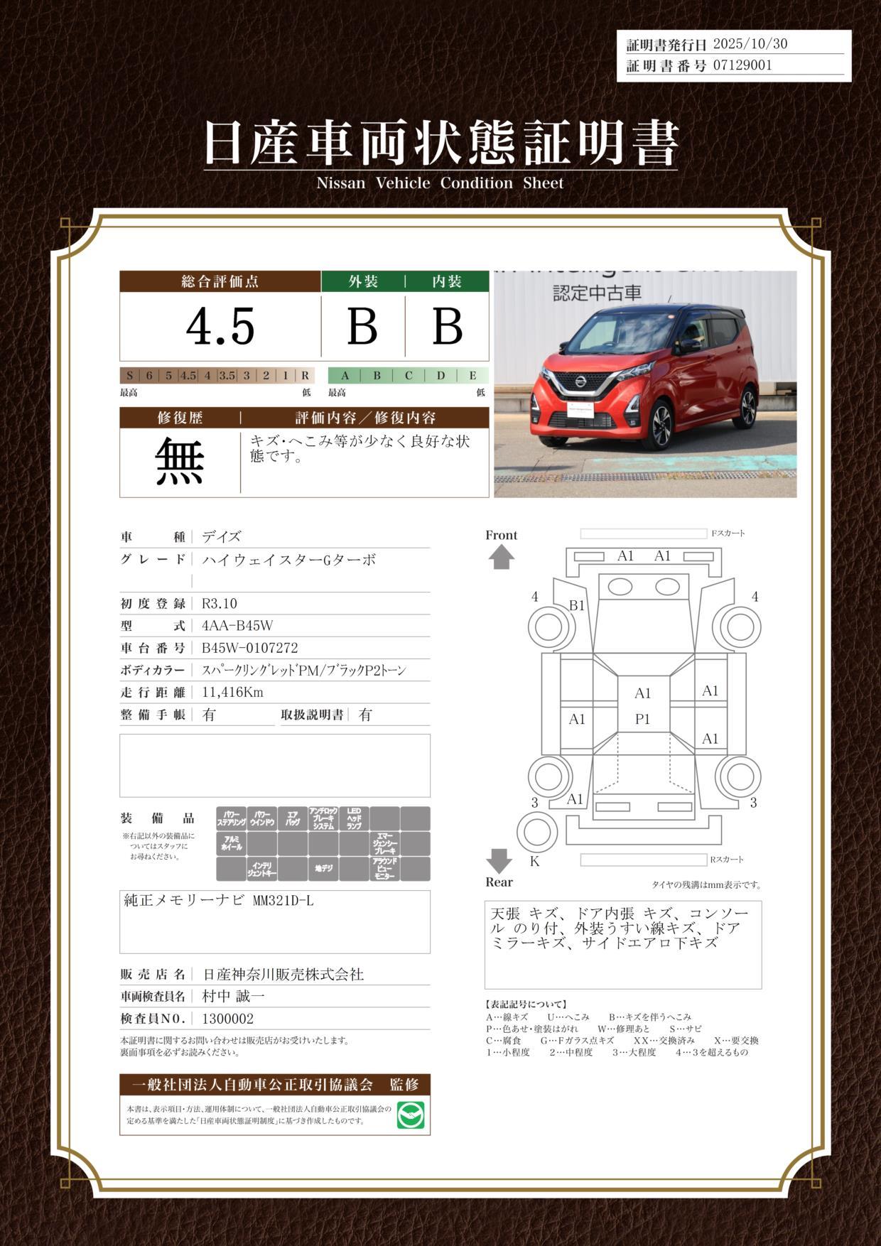 ご納車後 一ヶ月又は1000キロ目安の無料点検がございます。日産プリンス神奈川の61店舗はもちろん、日産整備工場で保証整備が受けられ安心です!納車の際にご予約を承ります、スタッフにご用命下さいませ。