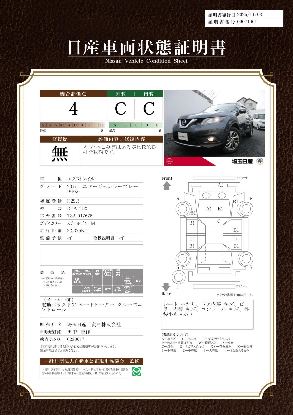 | 保証修理受付先 | 全国約3000箇所の日産ディーラーサービス工場にて修理可能です。 |