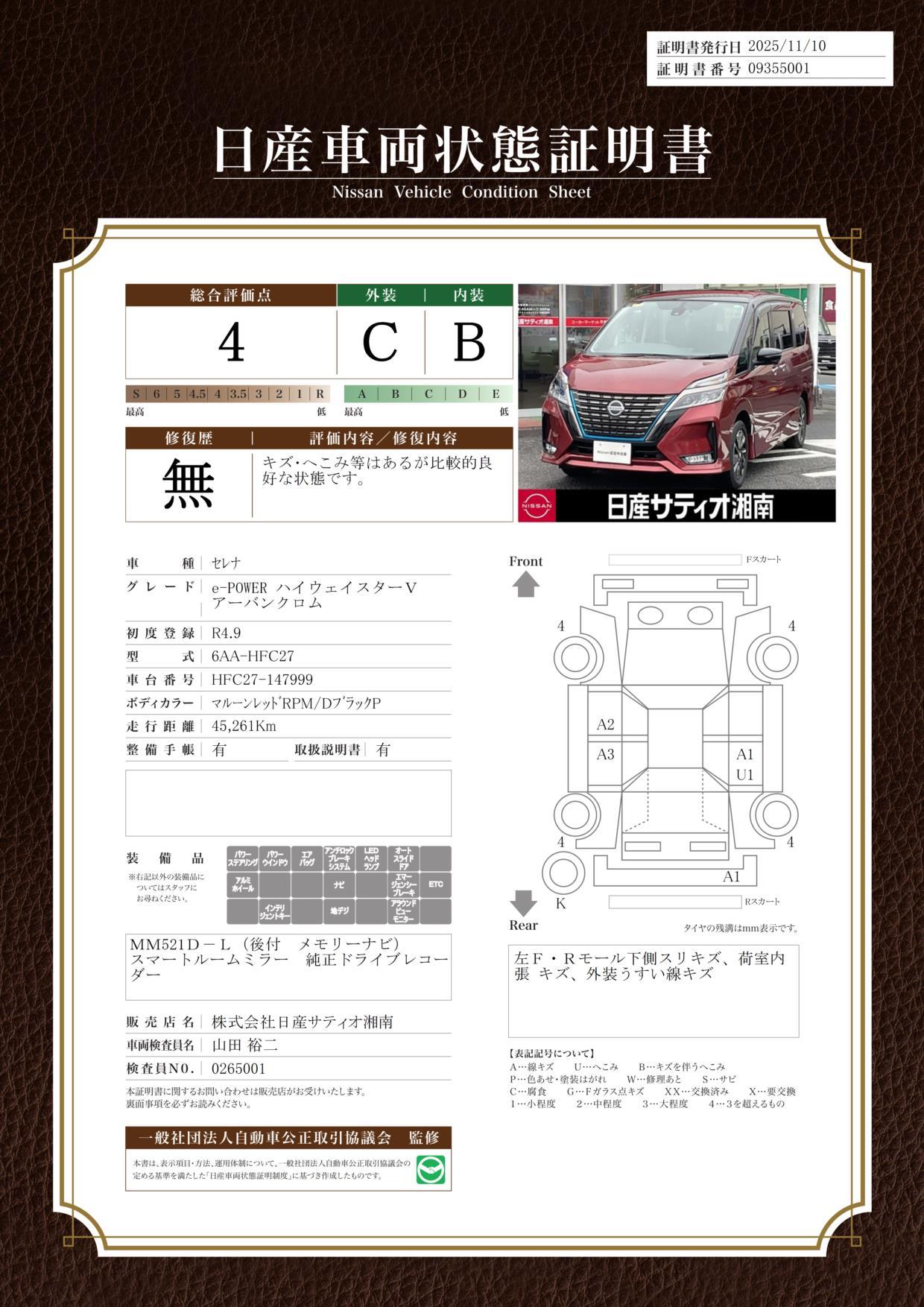 全車、走行距離無制限の1年間日産ワイド保証付きです。さらに【日産プレミアム認定中古車】は2年間のワイド保証付きです。万一のトラブルには、全国の日産サービス工場でサポートいたします。
