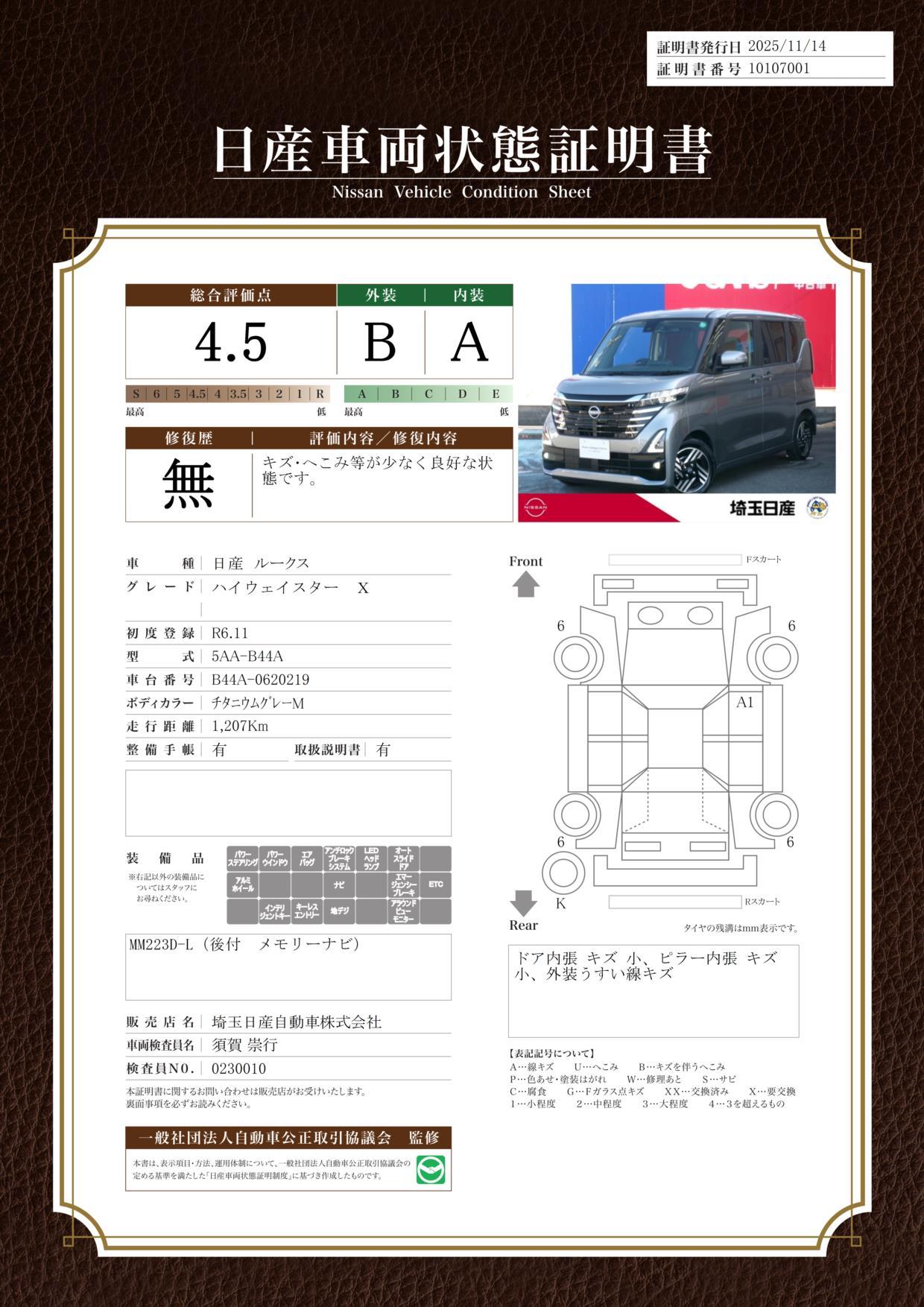 納車後、1ヶ月無料点検がお住まいの近くの日産ディーラーで受けられます!また、保証修理に関しても同様に最寄りの日産ディーラーで受けられます!オイル交換や定期点検などもディーラー品質でご提供しておりますので、何なりとお申し付けください。