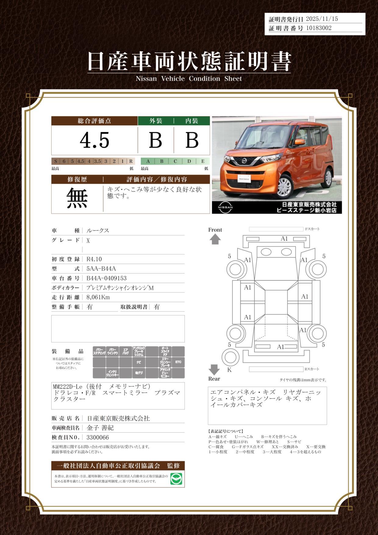 | 保証について | [保証付]:24ヶ月・走行無制限 |