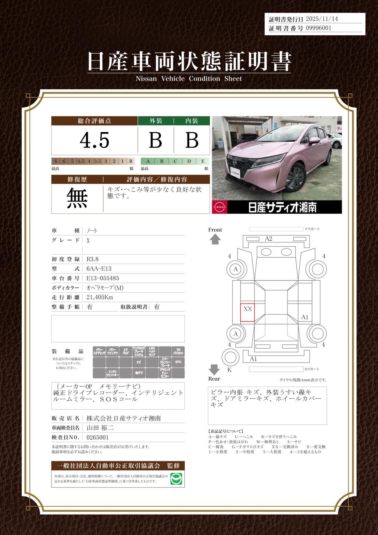 修復歴 なし 車体色 オペラモーブメタリック