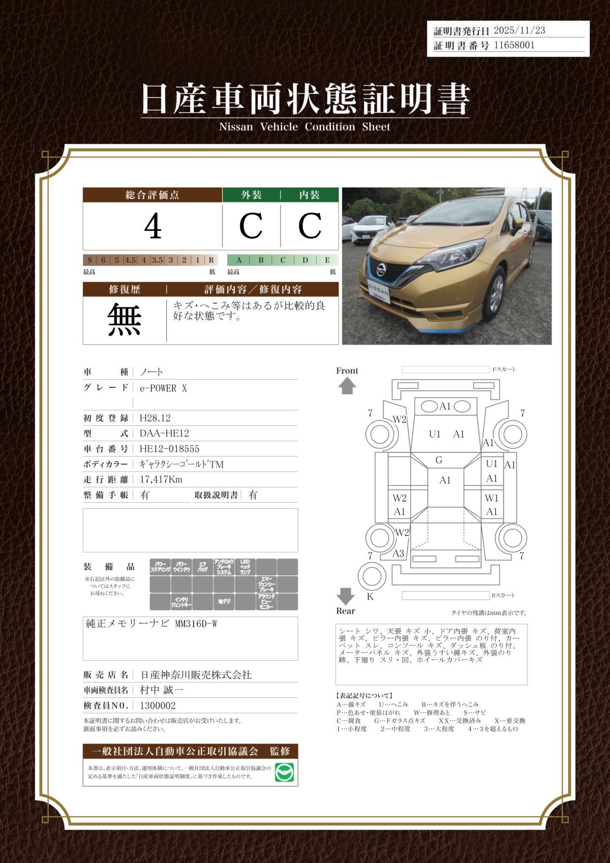 ご納車後 一ヶ月又は1000キロ目安の無料点検がございます。日産神奈川の121店舗はもちろん、日産整備工場で保証整備が受けられ安心です!納車の際にご予約を承ります、スタッフにご用命下さいませ。