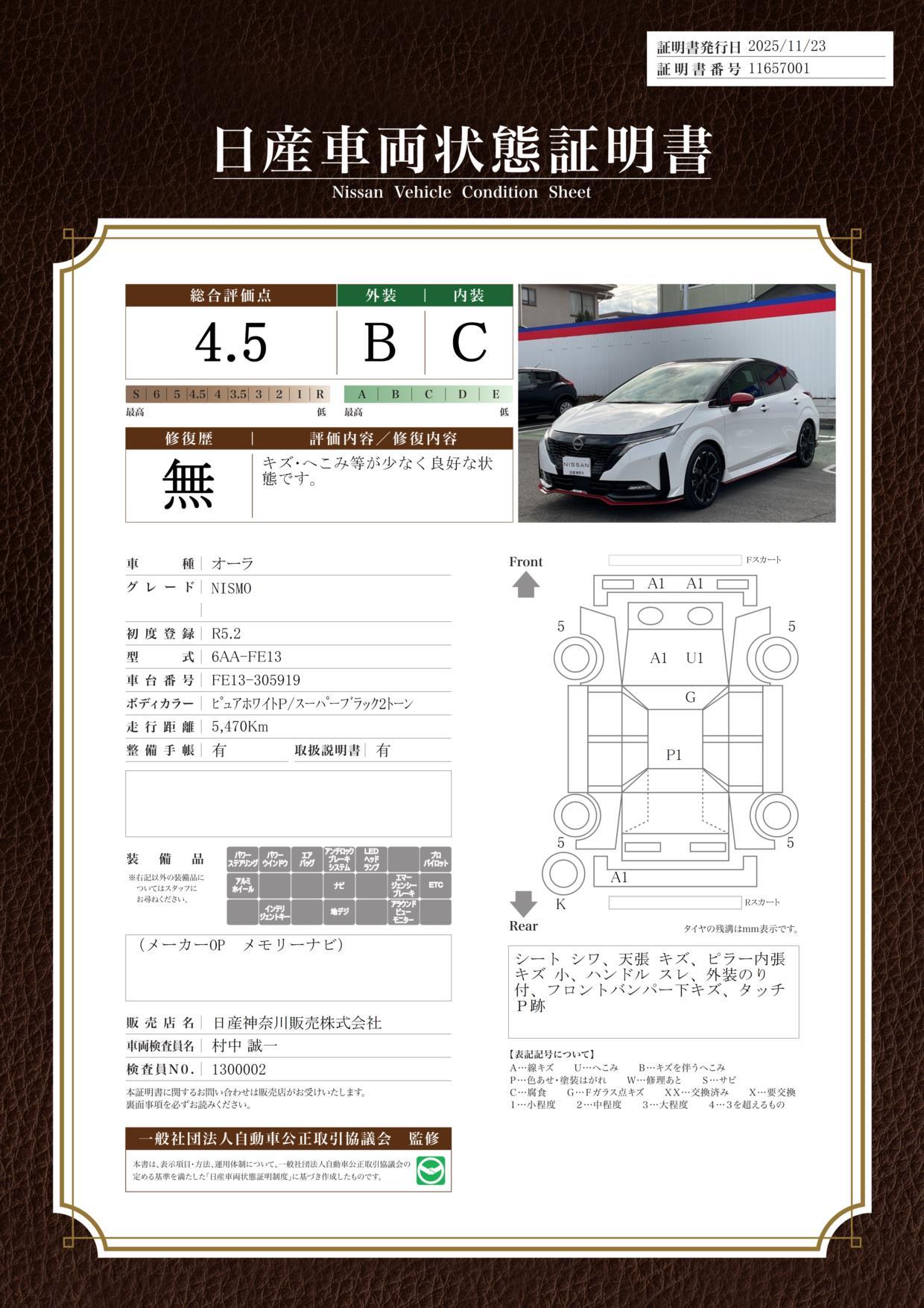 修復歴 なし 車体色 ピュアホワイトP/スーパーブラック2トーン