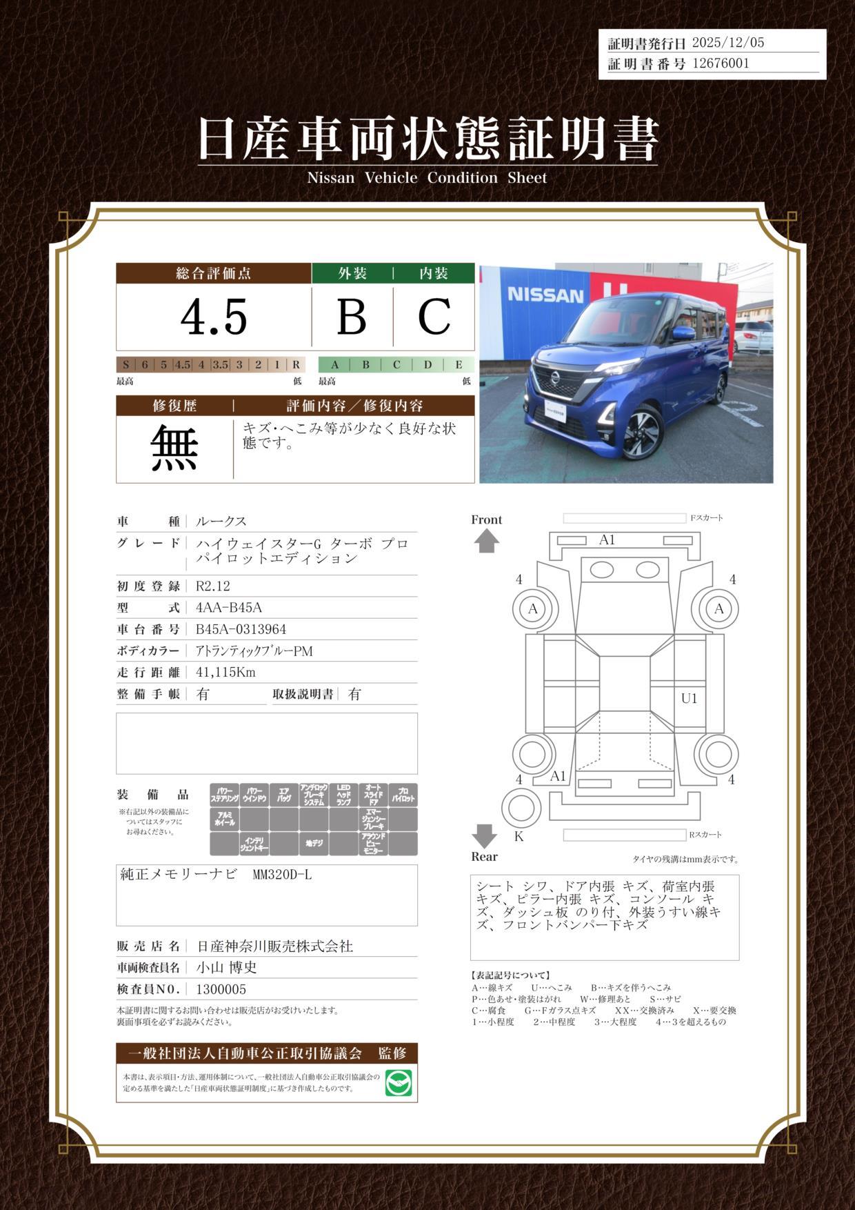 ご納車後 一ヶ月又は1000キロ目安の無料点検がございます。日産プリンス神奈川の61店舗はもちろん、日産整備工場で保証整備が受けられ安心です!納車の際にご予約を承ります、スタッフにご用命下さいませ。