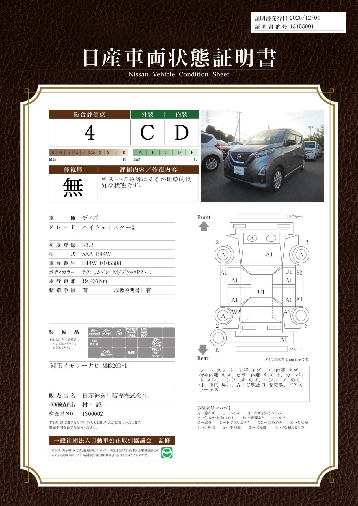 プレミアム認定中古車ならさらに安心走行距離無制限、大切な愛車のパーツ類を2年間無料保証!全国の日産サービス工場をご利用いただけるので、万が一お出掛け先でトラブルが発生しても安心です。(日産車以外もサポートいたします)また、1ヶ月又は1000km走行時に、無料点検を実施
