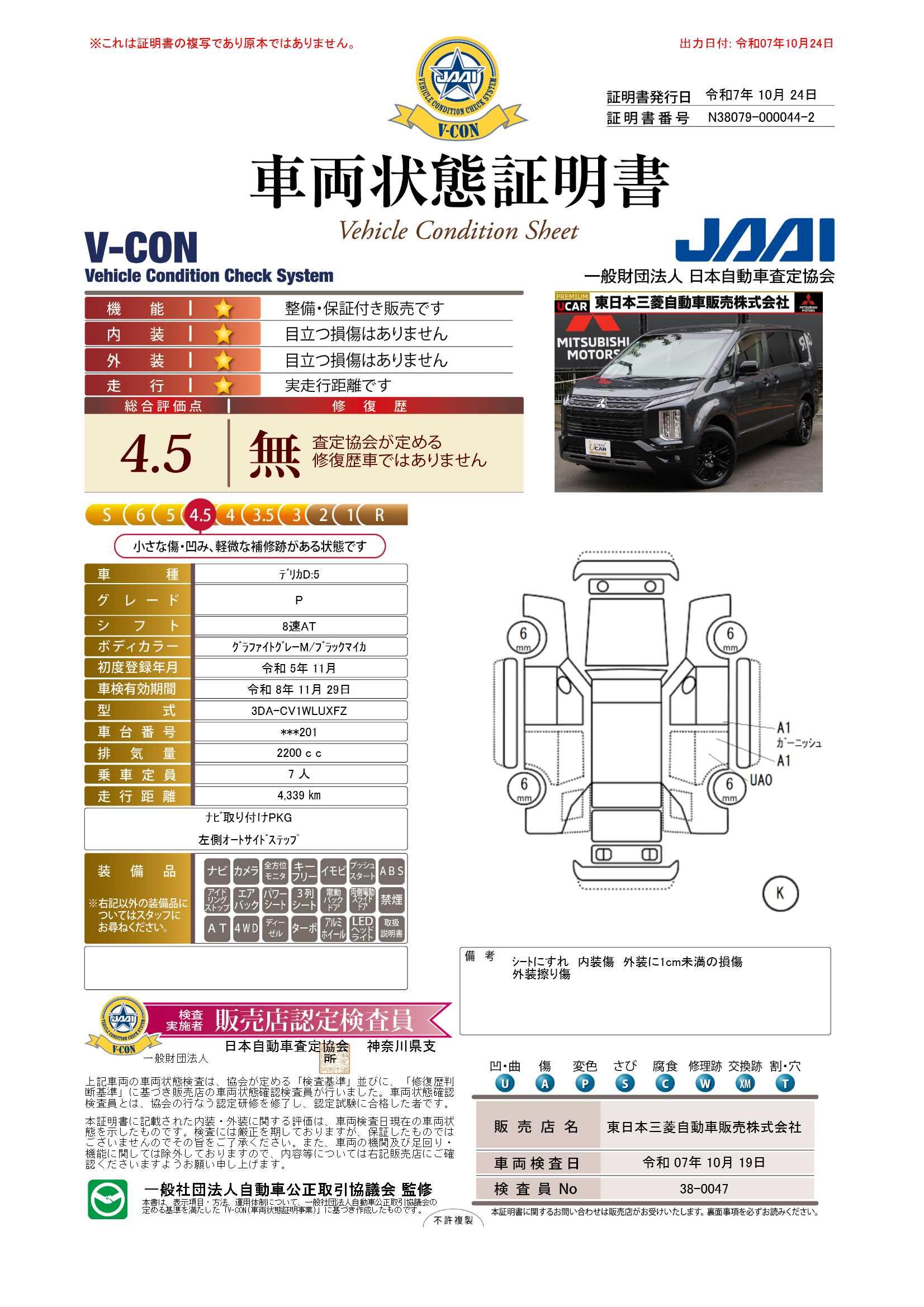 [保証付]:5年・走行無制限 3年間走行距離無制限の三菱ディーラー保証です。全国保証なのでお近くの三菱ディーラーをご利用頂けます。消耗部品と油脂類を除く純正機械部位が保証の対象となります。 |