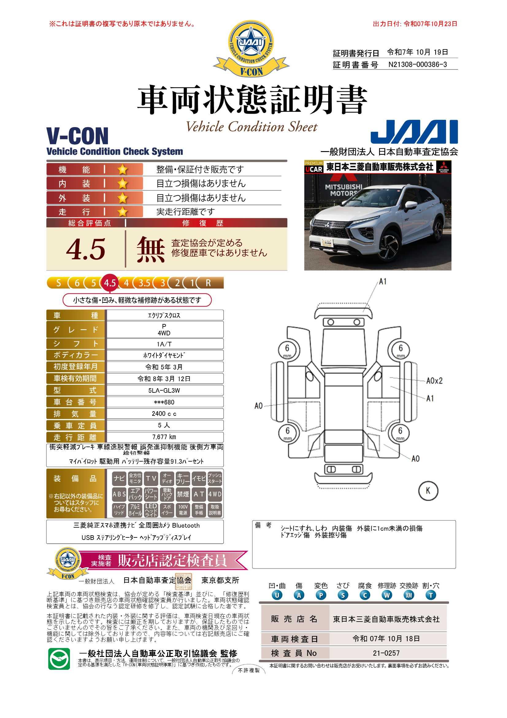| 保証修理受付先 | 最寄りの三菱自動車特約販売店がご利用いただけます。 |