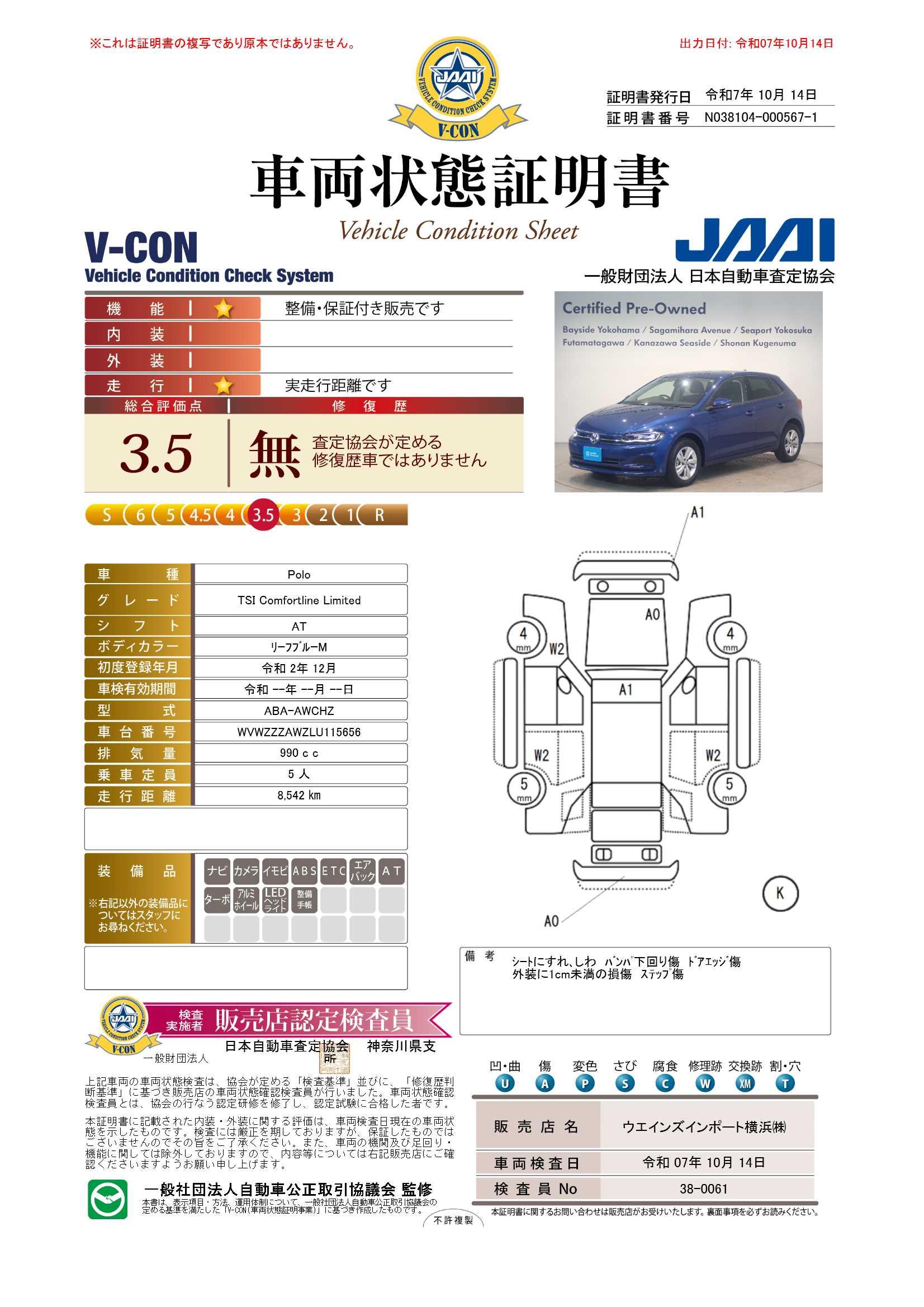 [保証付]:12ヶ月・走行無制限 距離無制限の保証とロードアシスタンスサービスが全車に付帯されています。また延長保証(有償)もご利用頂けます。全国のフォルクスワーゲンディーラーでサービスの受付が可能ですので遠方のお客様もご安心下さい。 |