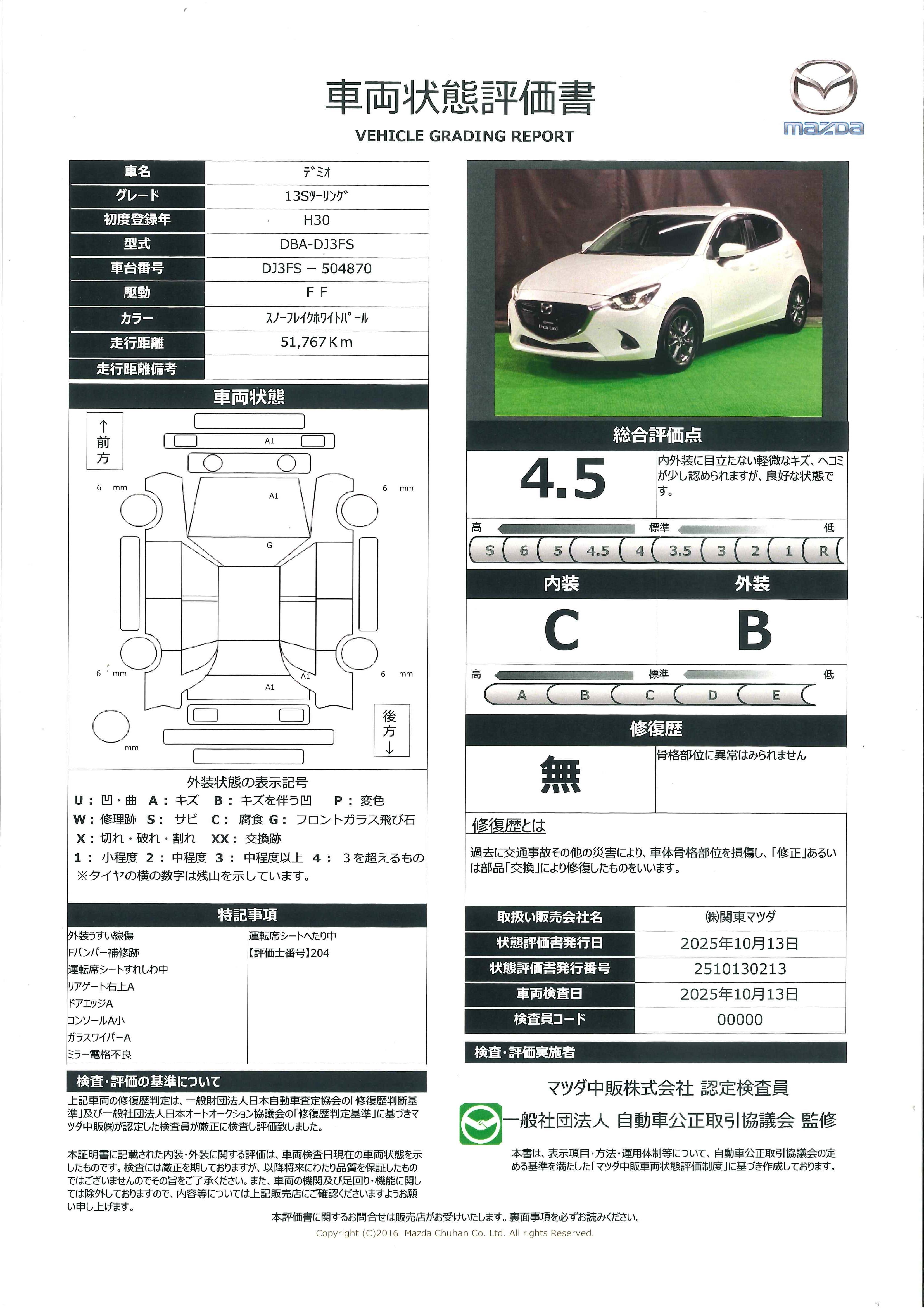 [保証付]:12ヶ月・走行無制限 さわやか保証 全国のマツダ販売店(離島は除く)にて保証修理対応可能です!詳しくは店舗スタッフまで! |