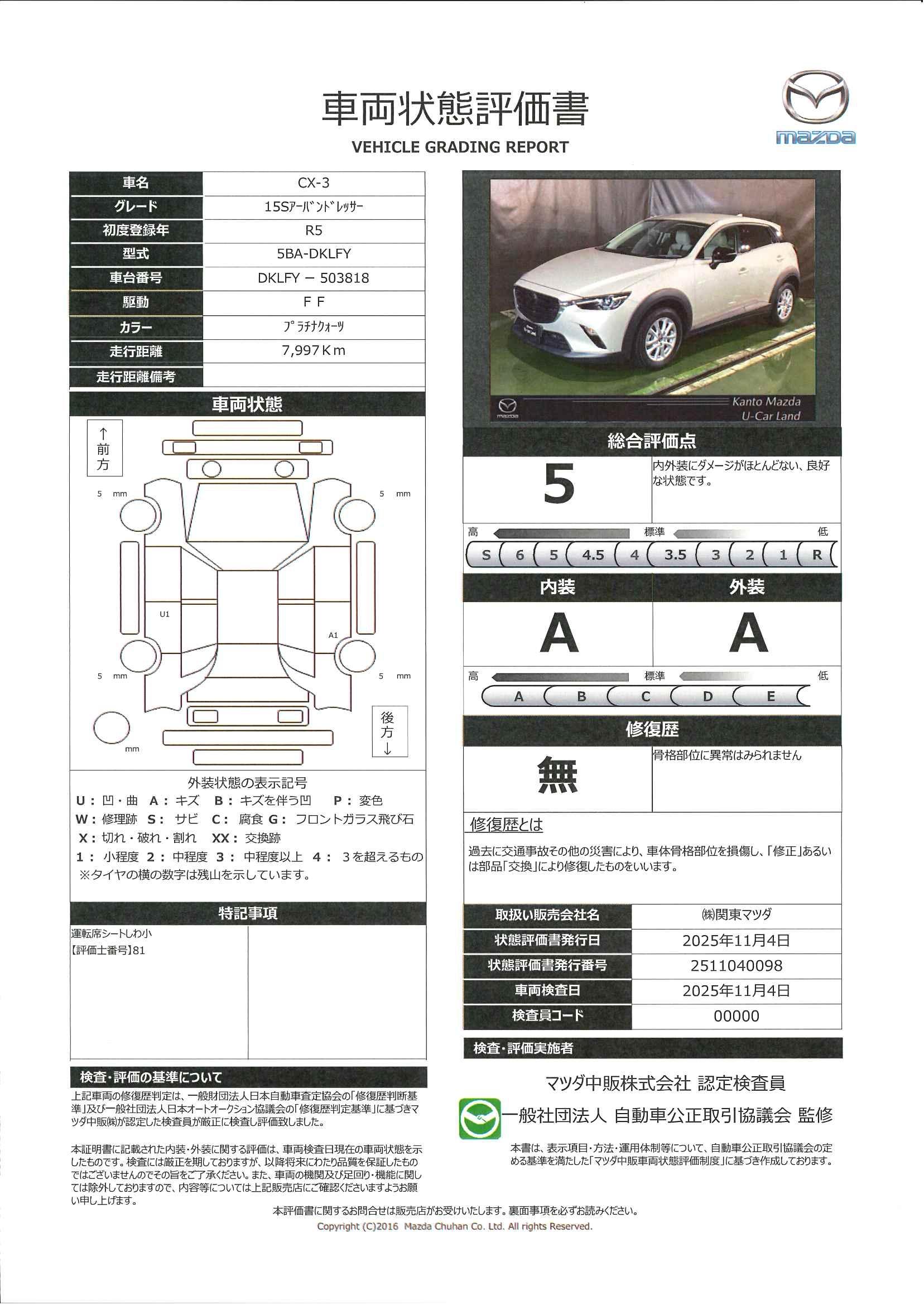 [保証付]:12ヶ月・走行無制限 さわやか保証 全国のマツダ販売店(離島は除く)にて保証修理対応可能です!詳しくは店舗スタッフまで! |