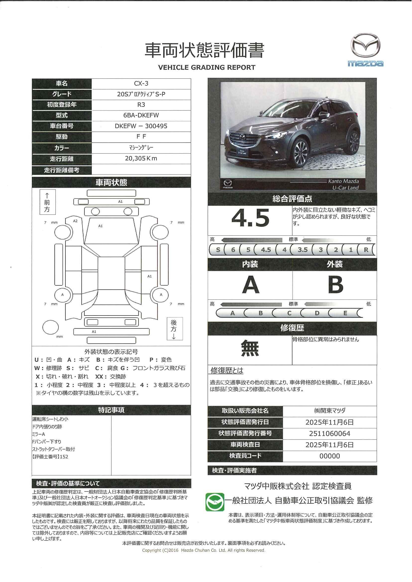 [保証付]:12ヶ月・走行無制限 さわやか保証 全国のマツダディーラーにて保証修理対応可能です(離島は除く)☆ 延長保証も別途ご用意(法人名義の場合は不可)。詳しくはお電話にてお問合せください。 |