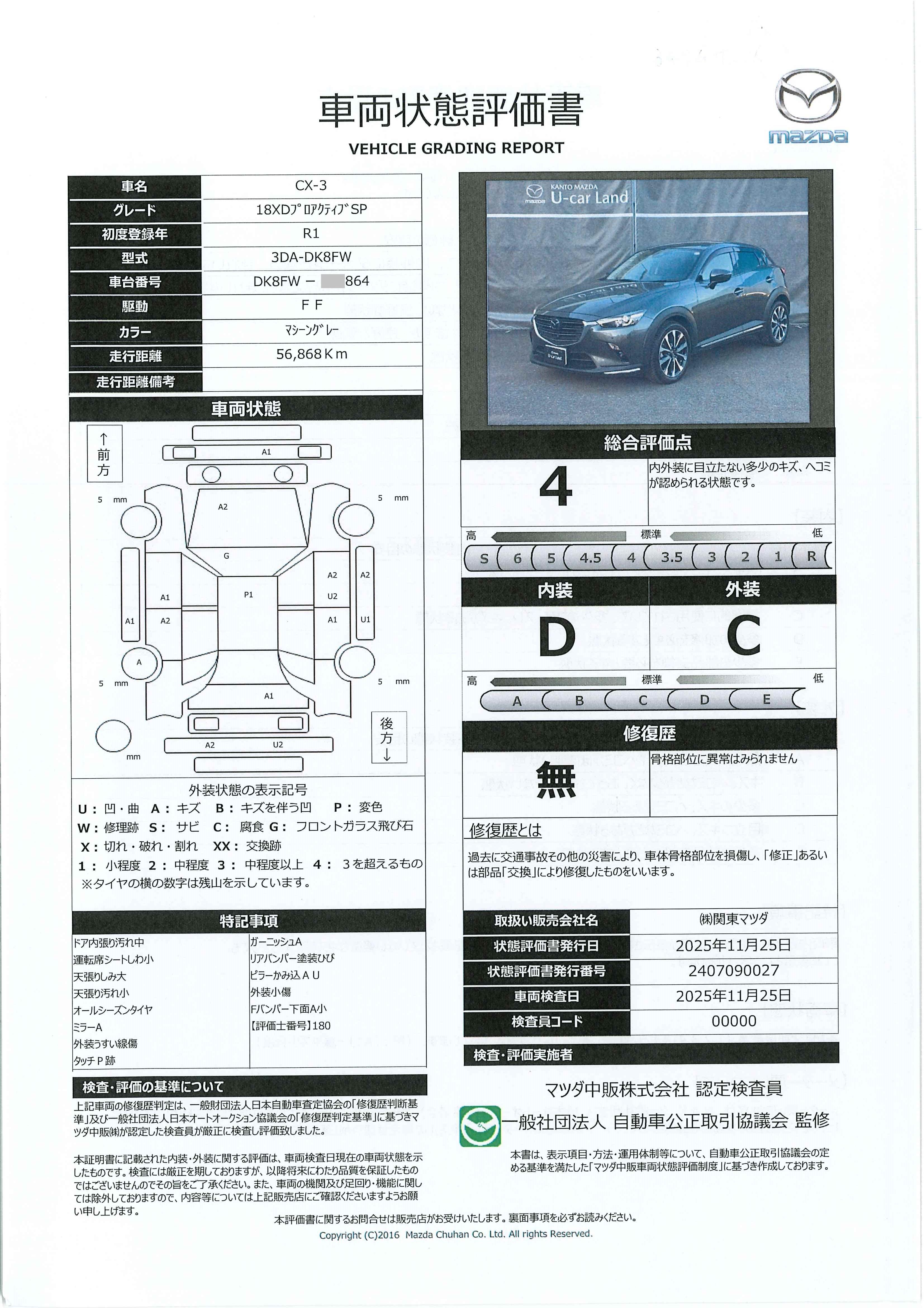 [保証付]:12ヶ月・走行無制限 さわやか保証 全国のマツダ販売店(離島は除く)にて保証修理対応可能です!詳しくは店舗スタッフまで! |