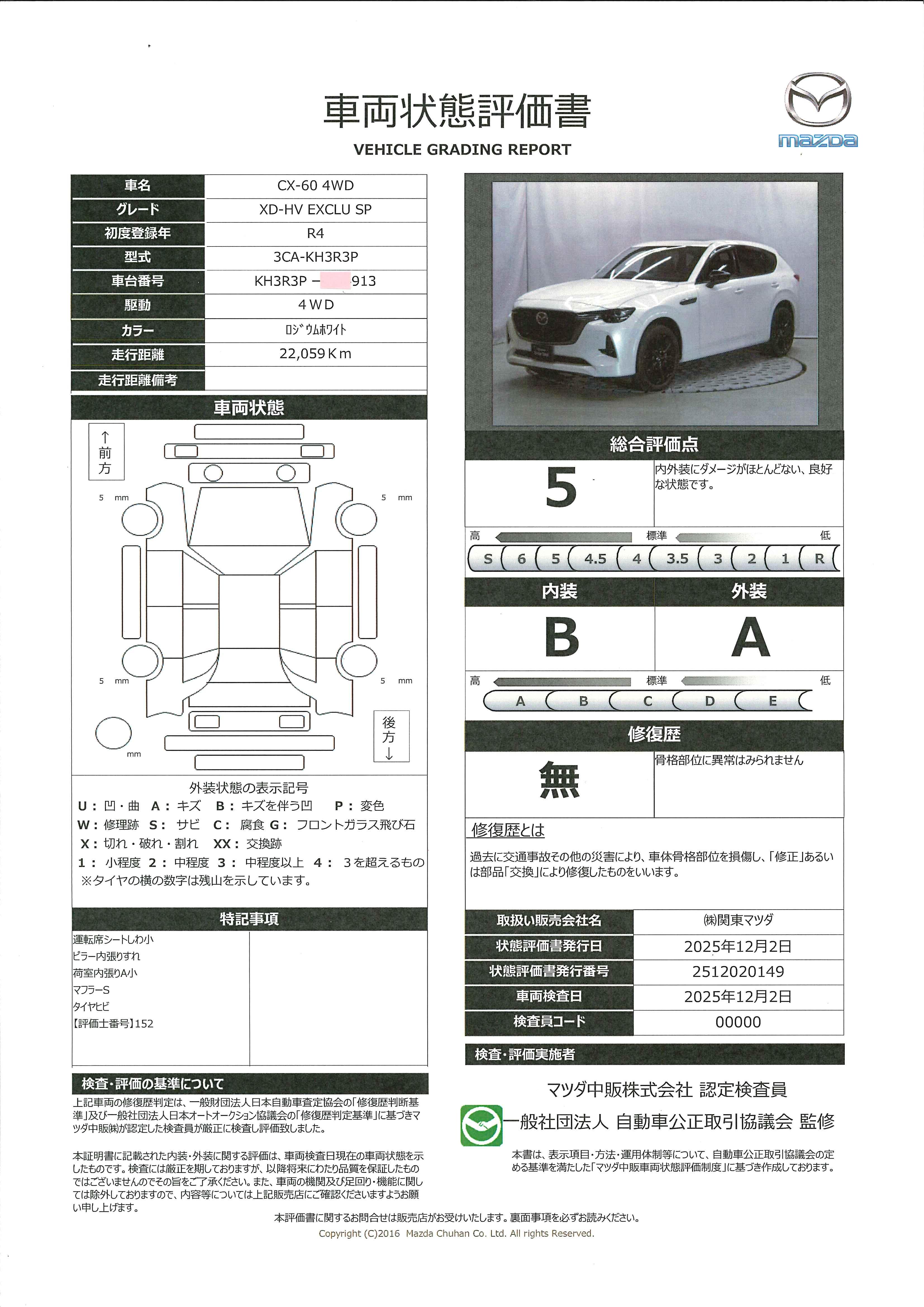 [保証付]:12ヶ月・走行無制限 さわやか保証 全国のマツダディーラーにて保証修理対応可能です(離島は除く)☆ 延長保証も別途ご用意(法人名義の場合は不可)。詳しくはお電話にてお問合せください。 |