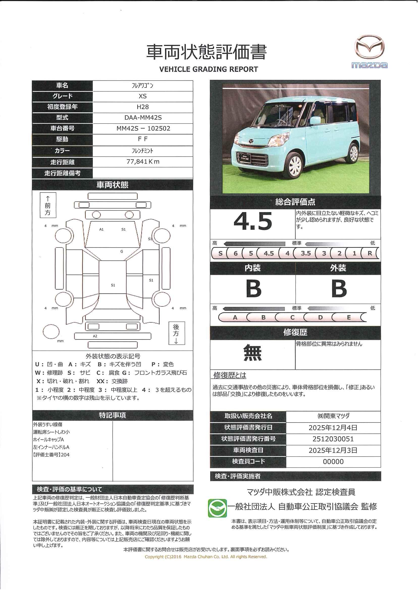 [保証付]:6ヶ月・10000km ※いずれか早い時期が保証適用の条件となります。 パートナー保証 全国のマツダ販売店(離島は除く)にて保証修理対応可能です!詳しくは店舗スタッフまで! |
