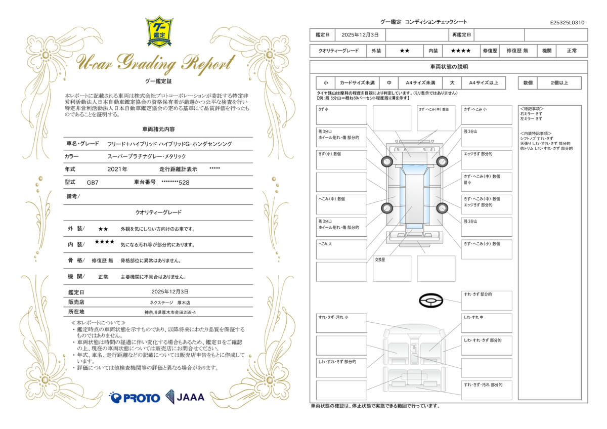 | 保証項目 | 3ヶ月・3000km以内ならエンジン、トランスミッション、ハイブリッド、ステアリング、ブレーキの各機構における主要項目を無償修理(または交換)いたします。 |
