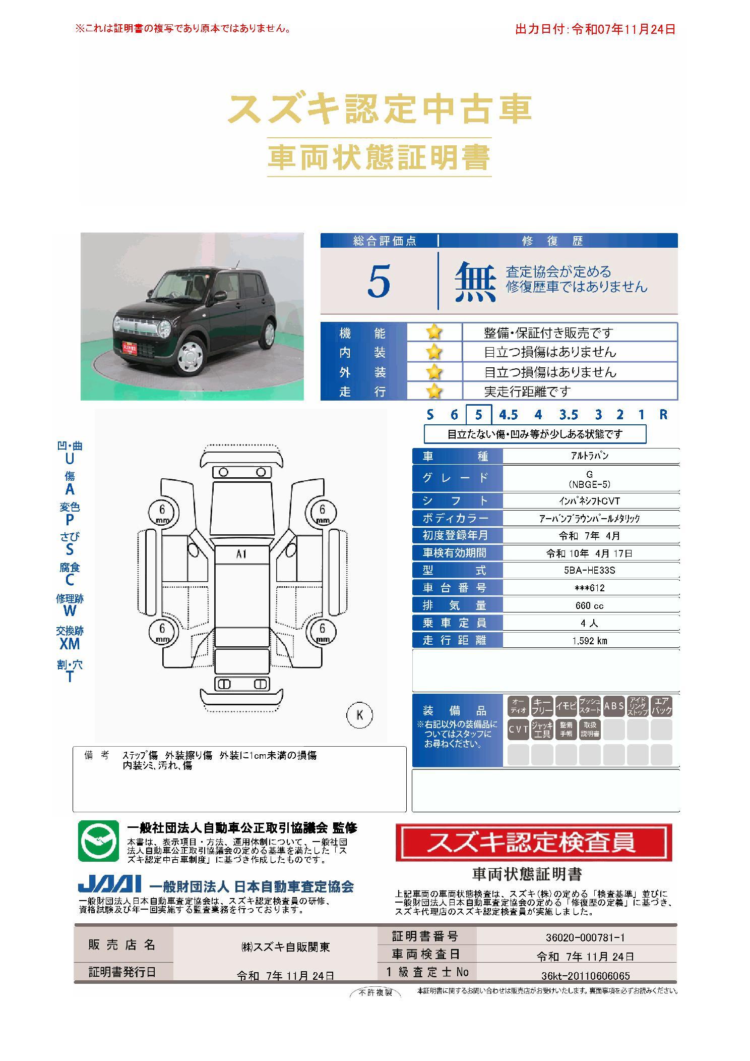 | 保証について | [保証付]:2028(令和10)年4月まで・60000km ※いずれか早い時期が保証適用の条件となります。 |