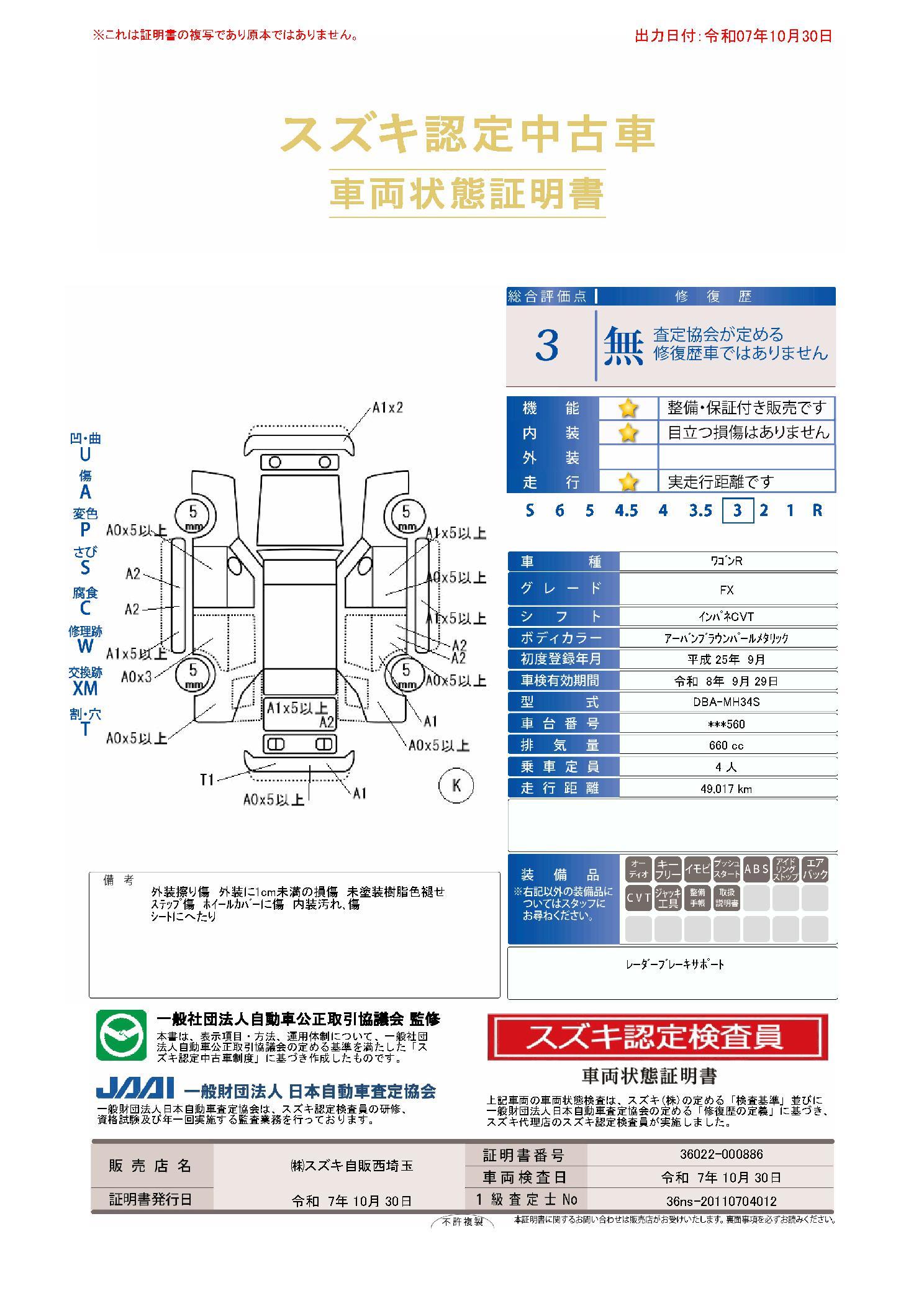 | 保証について | [保証付]:3ヶ月・3000km ※いずれか早い時期が保証適用の条件となります。 |