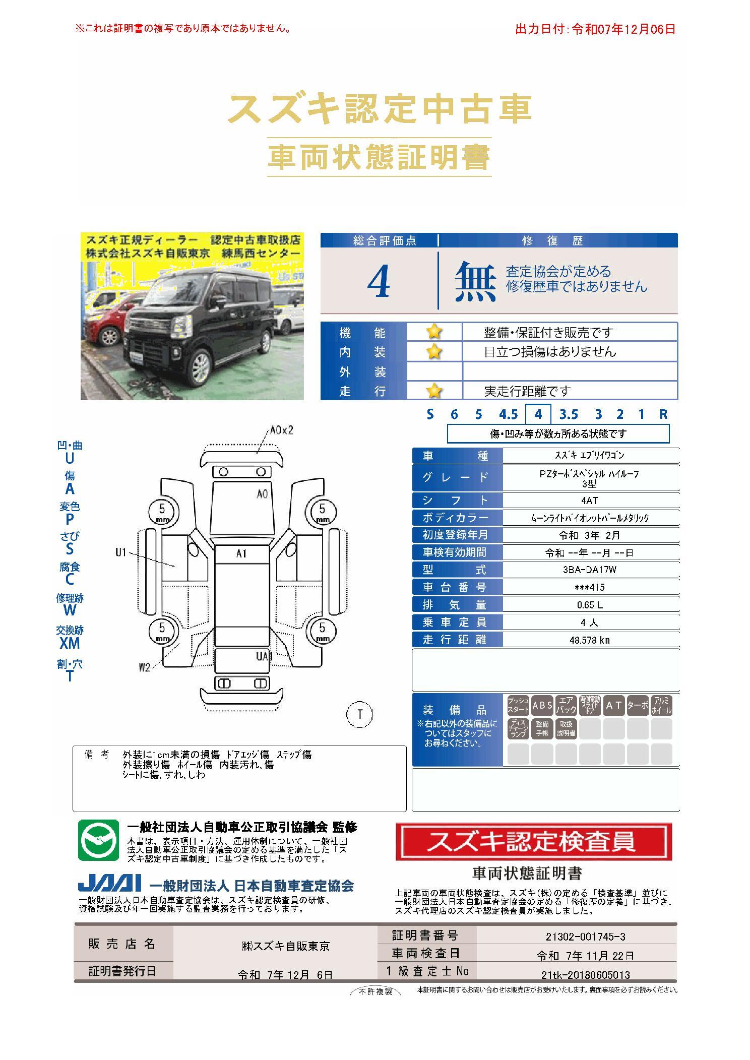 ご覧いただきまして有難うございます。スズキ自販東京 練馬西センター です。スズキのメーカー直営ディーラーです。全てのお車は整備渡しをさせていただきます。 7
