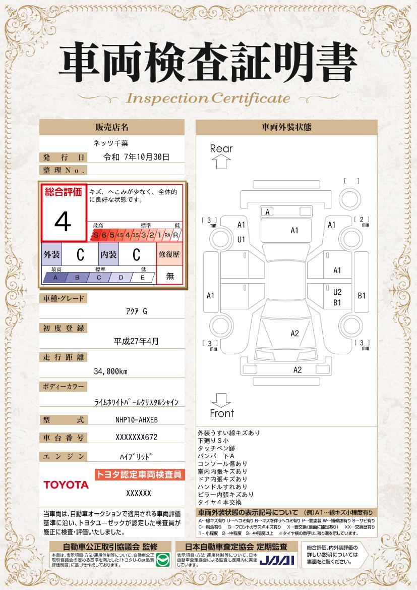 | 保証について | [保証付]:12ヶ月・走行無制限 ロングラン保証1年<走行距離無制限> +ハイブリッド保証<保証期間は初度登録年月から10年目まで、もしくは3年間のいずれか長い方。但し走行距離20万キロまで> |