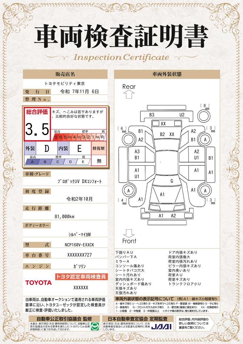 | 基本1年保証+2年間、合計3年間のトヨタロングラン保証付き |