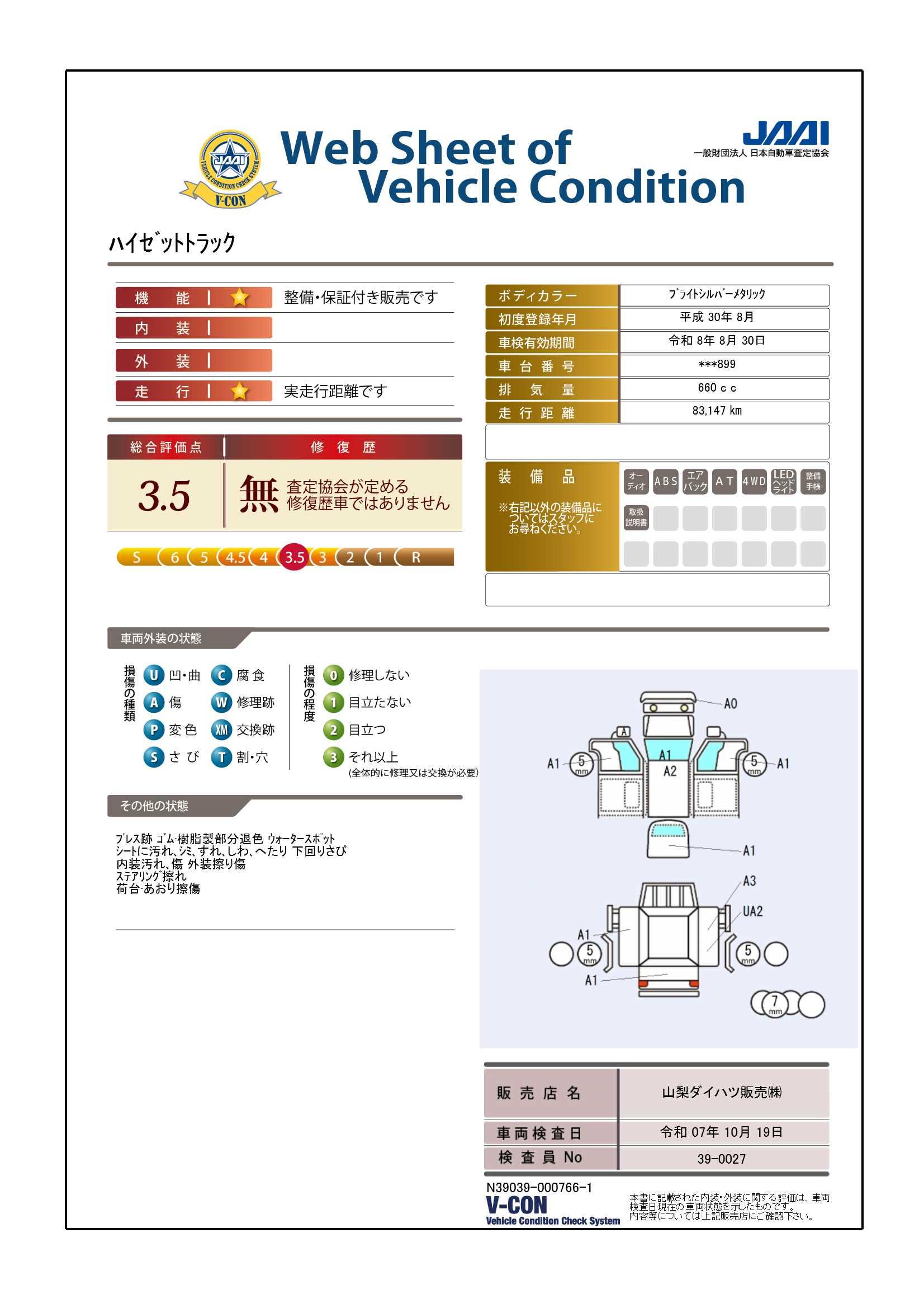 | 保証項目 | 計60項目 一般保証部品+特別保証部品。ボデー内外装品(塗装・錆を含む)・ゴム類(ウェザーストリップは対象)消耗品及び油脂類は除く。 |