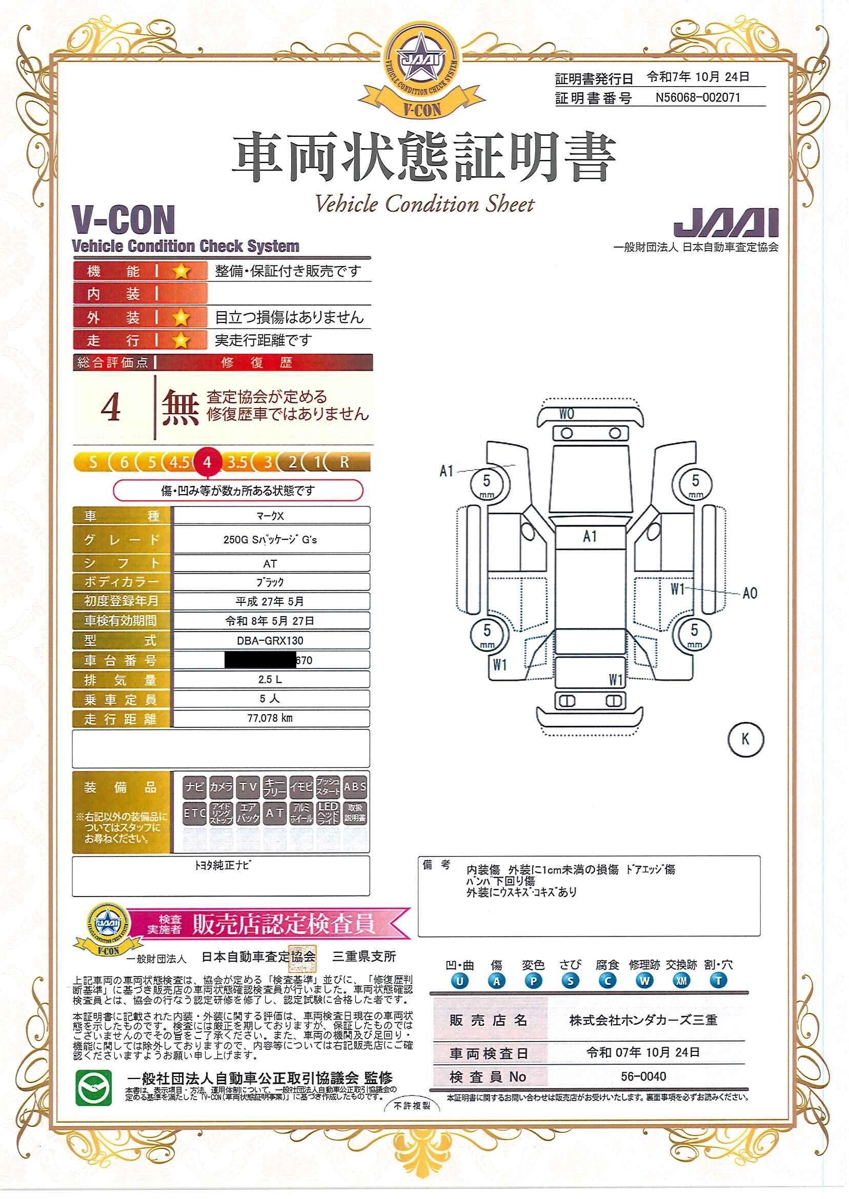 マークX 250G Sパッケージ G’s サンルーフ 0203859A30251026W003 3