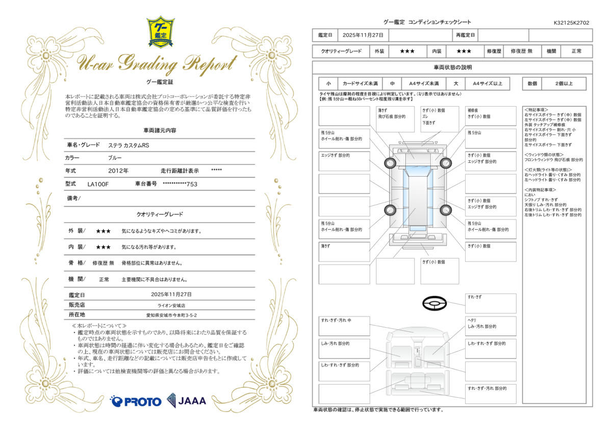 修復歴 なし 車体色 ブルー