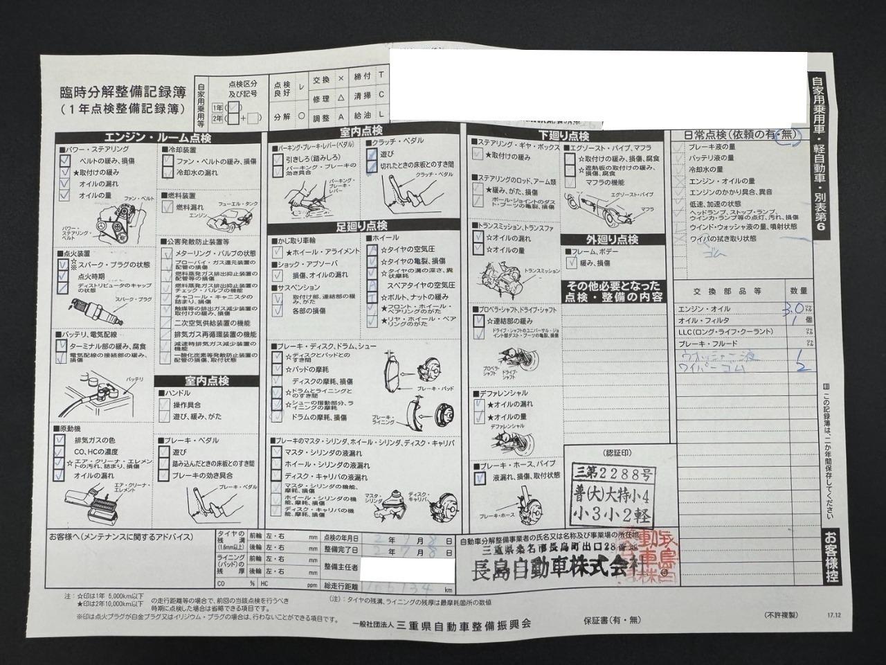 計83項目 『走る、曲がる、止まる』などの重要機関はもちろん、エアコンなど快適装備を含めた83項目をカバーいたします。ご納車時に保証書を発行いたしております。 |
