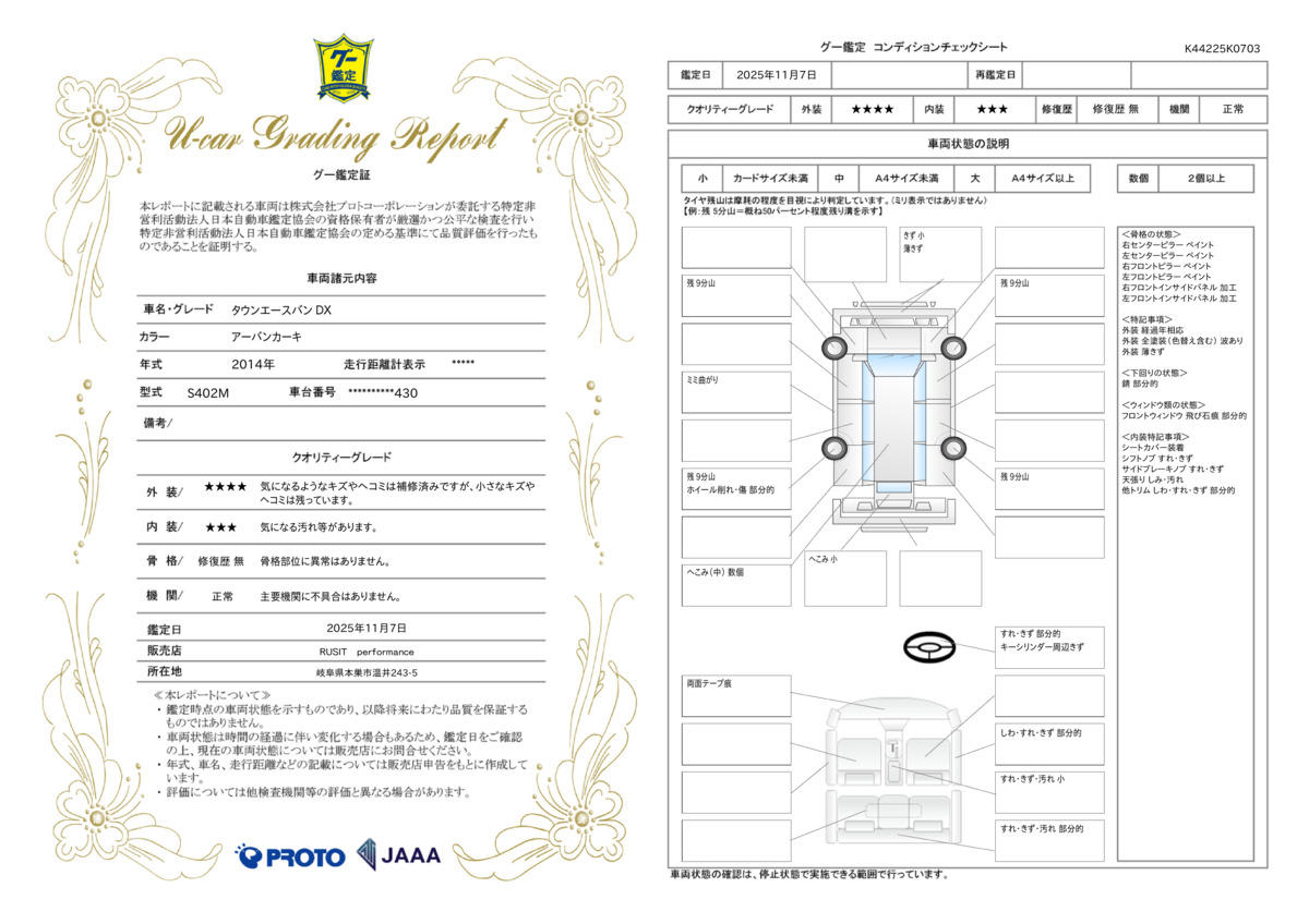 | 保証について | [保証付]:1ヶ月・1000km ※いずれか早い時期が保証適用の条件となります。 |