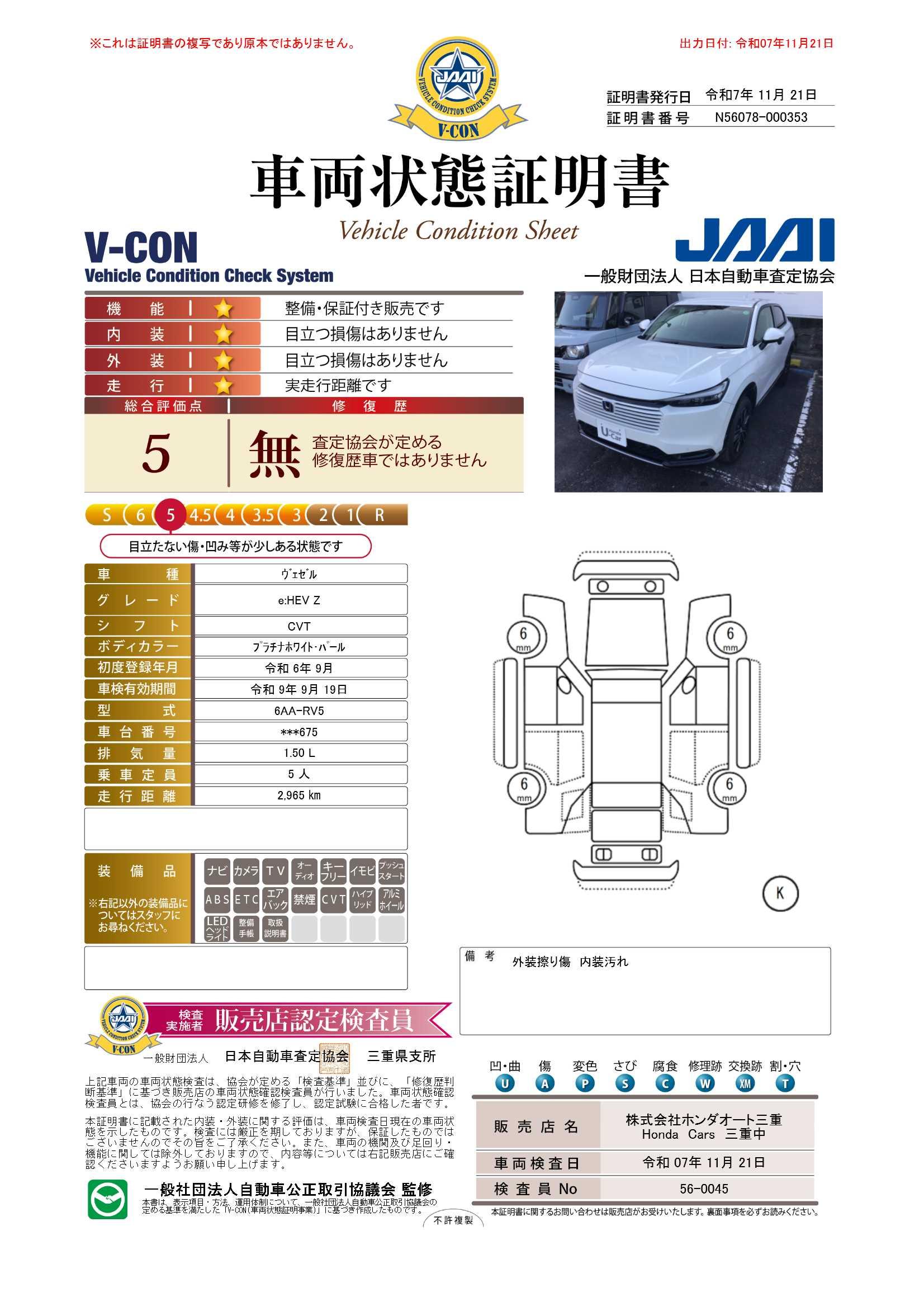 ヴェゼル e:HEV Z ギャザス8インチナビバックカメラ 0208400A30251125W002 19