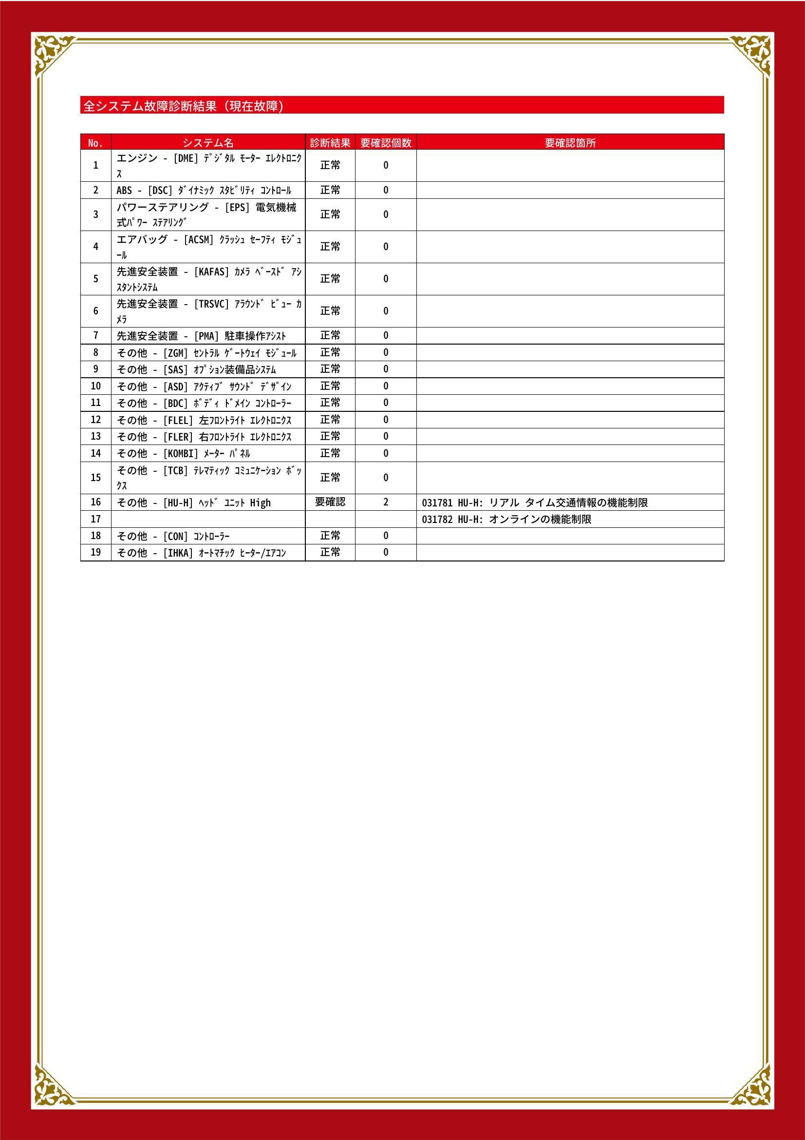 法定点検内容に応じた整備保証と万が一の主要機関部のトラブルに1か月または1000キロの自社保証となります。※自社整備工場のみのご対応となります。全国対応保証もございます。担当スタッフにご相談下さい。