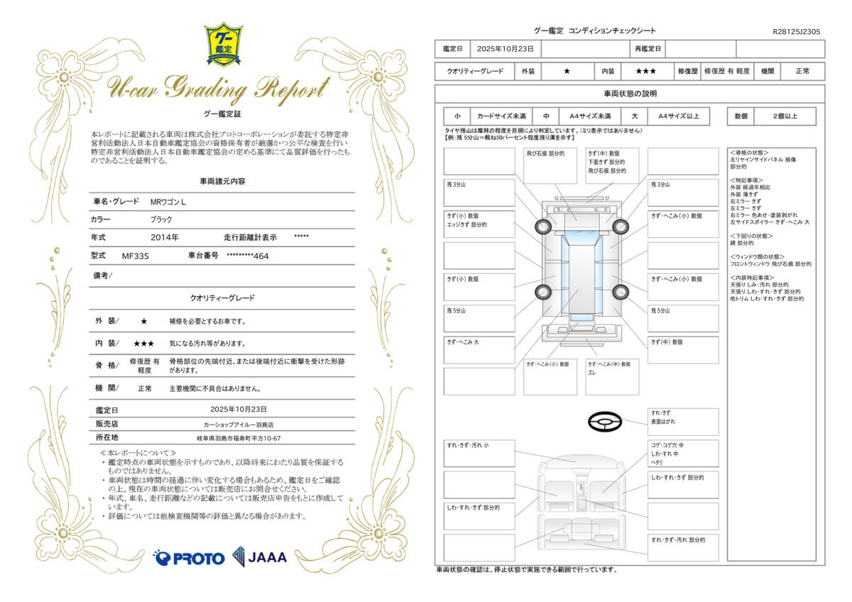 | 保証について | [保証付]:3ヶ月・3000km ※いずれか早い時期が保証適用の条件となります。 |
