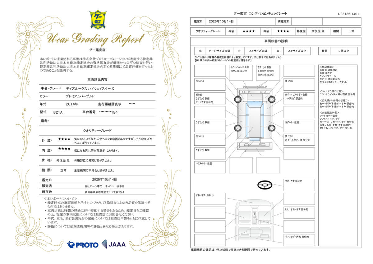 [保証付]:3ヶ月・3000km ※いずれか早い時期が保証適用の条件となります。 エンジン・ミッション、ギア、ステアリング、サスペンション、ブレーキ、エアコン、発電機など、消耗品を除く重要箇所に3か月間、3000kmの無料保証をお付けしています! |